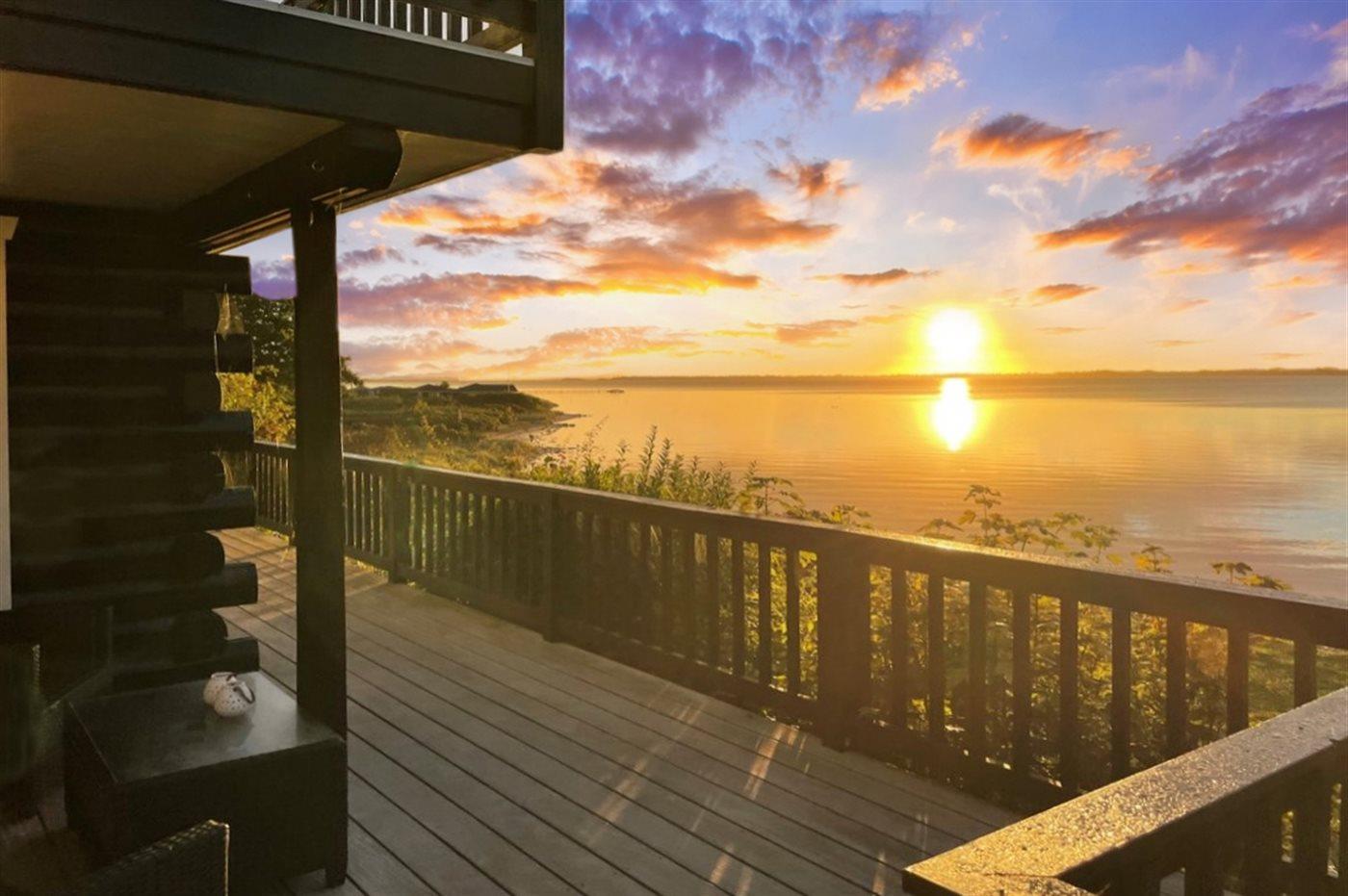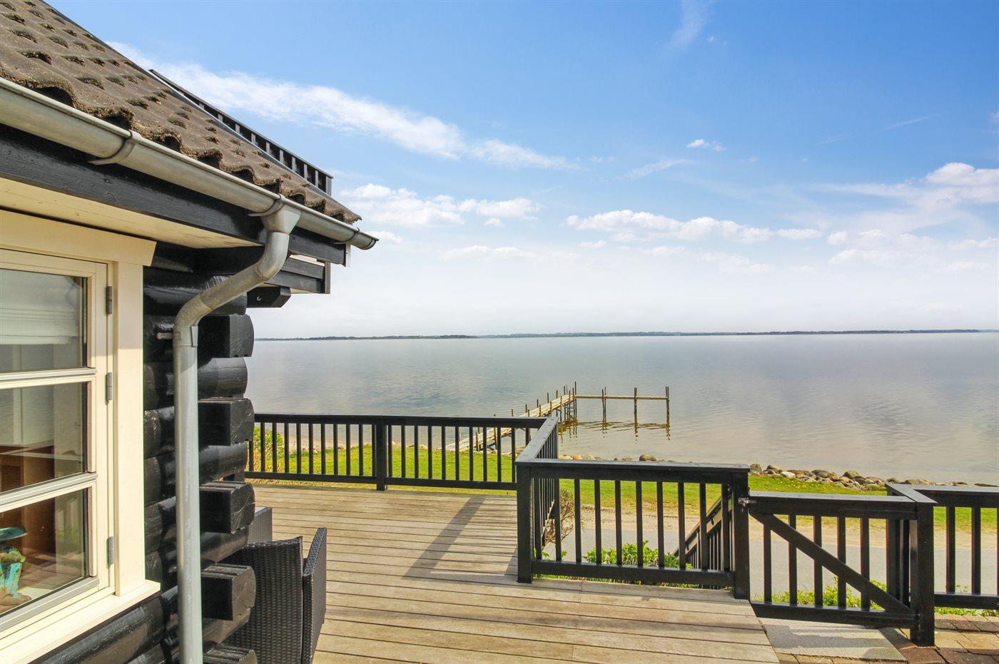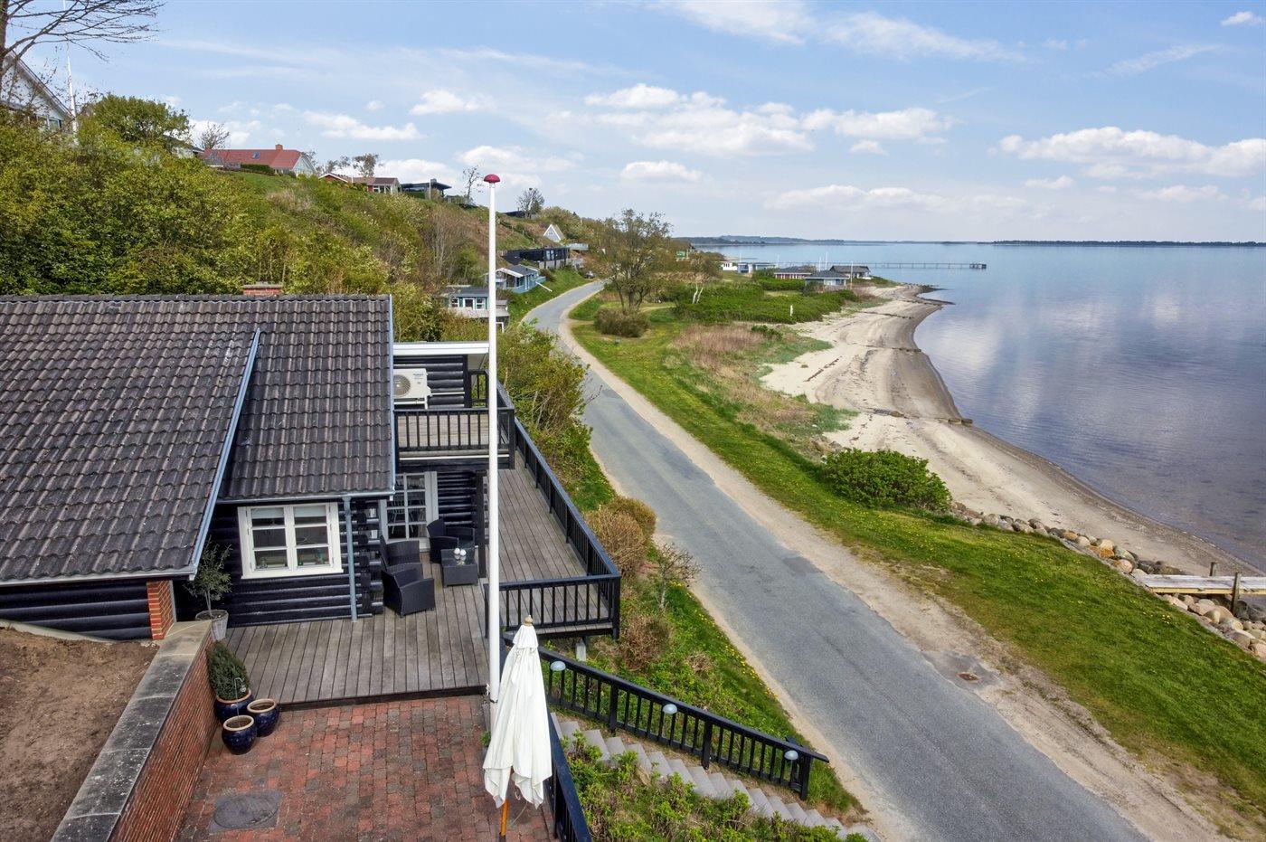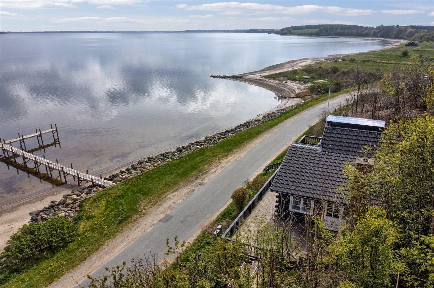 Unikt sommerhus ved Lyby Strand med fuld udsigt til fjorden og adgang til badebro og bådslæbested.