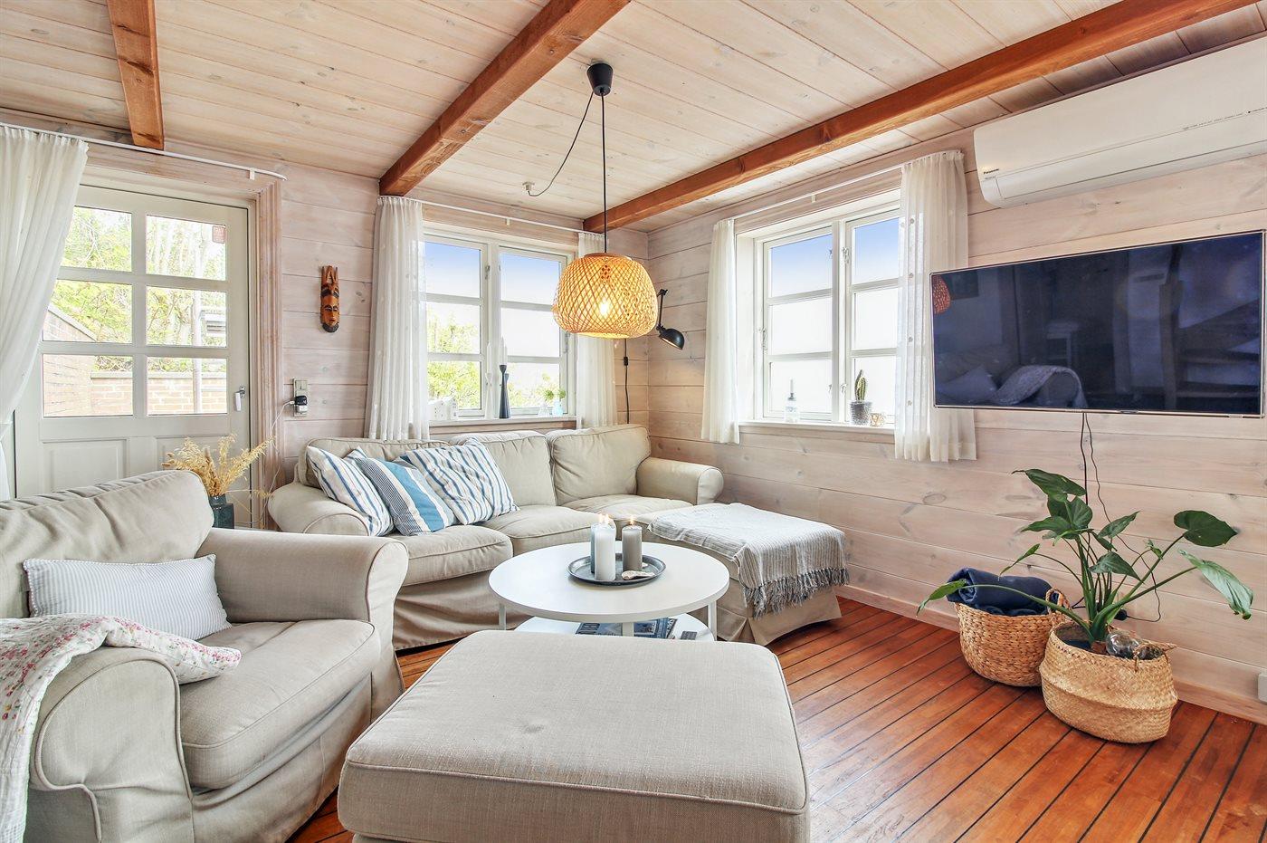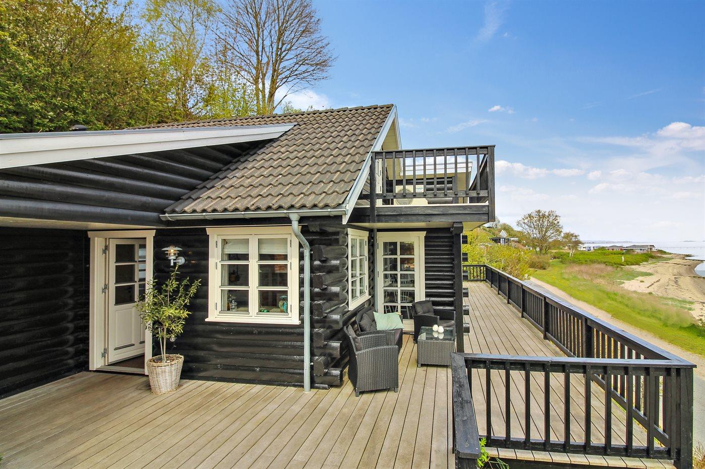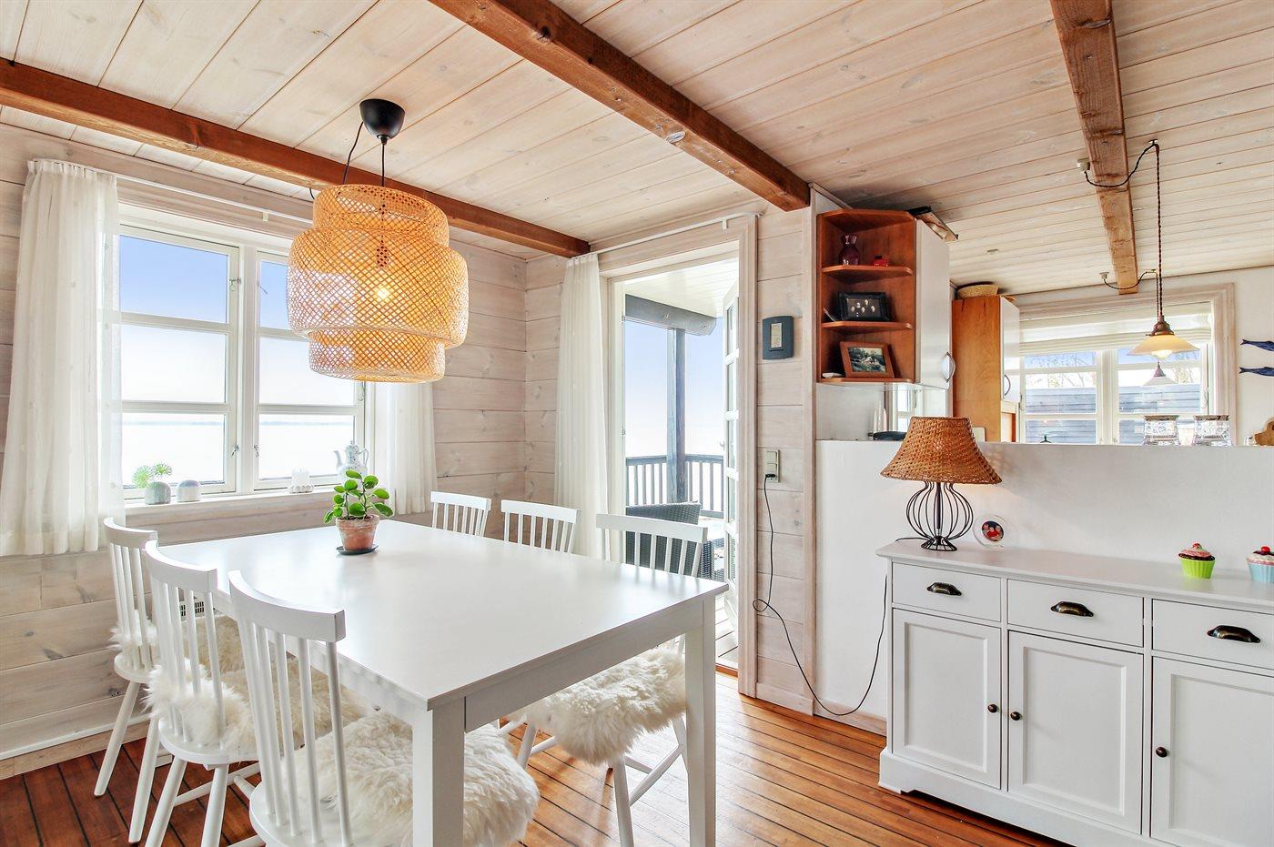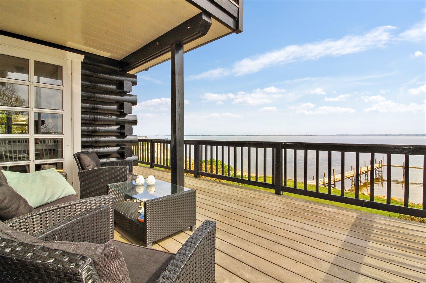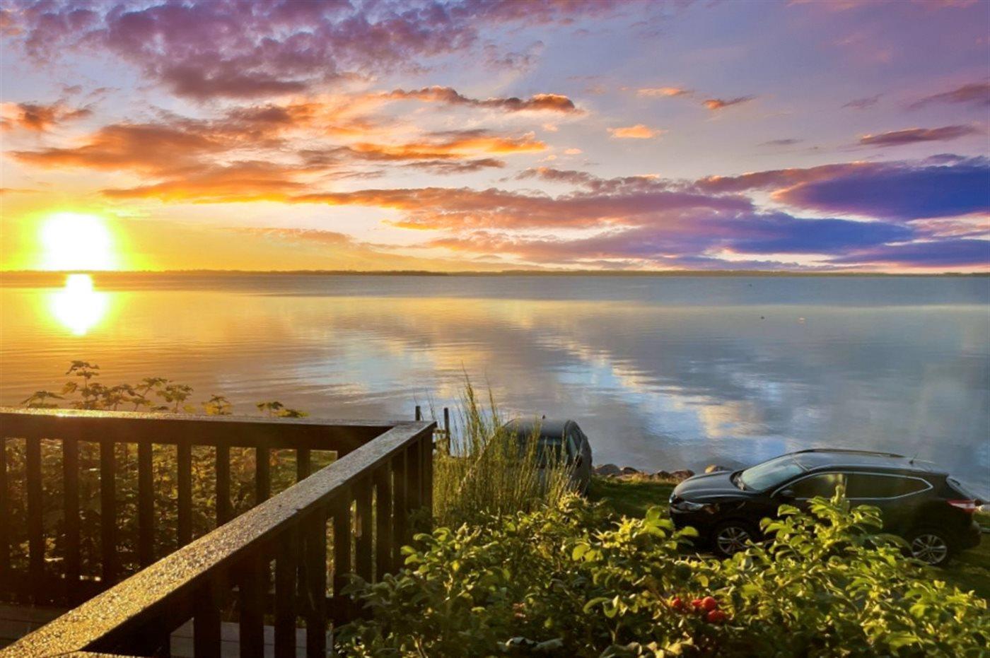 Unikt sommerhus ved Lyby Strand med fuld udsigt til fjorden og adgang til badebro og bådslæbested.