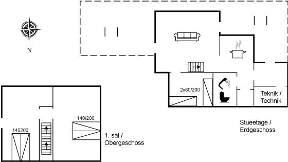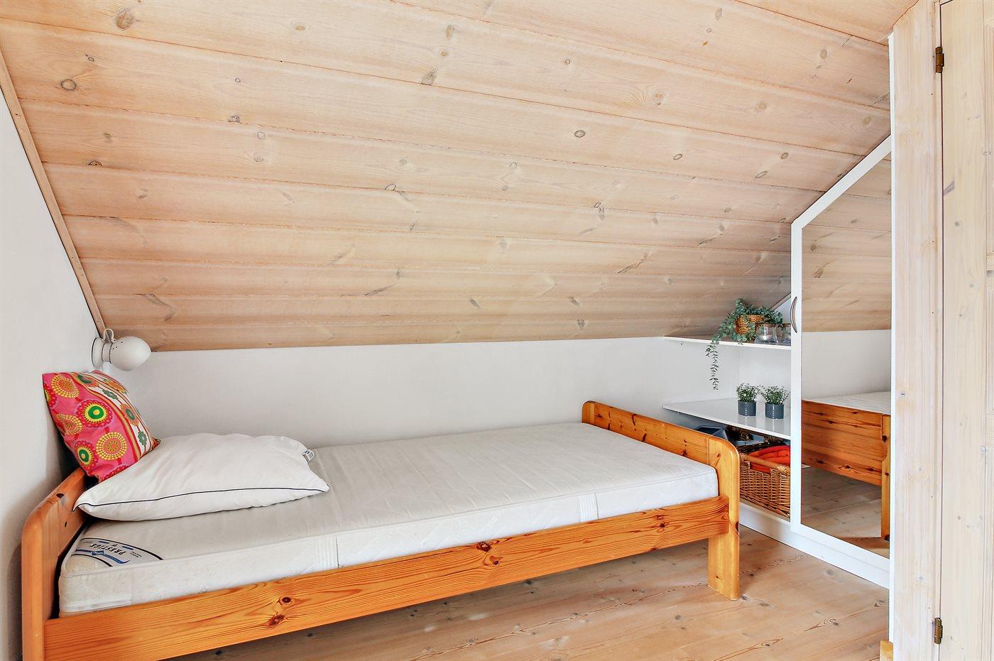 Der er i alt 3 soveværelser. Sovepladserne fordeler sig på: 4 sovepladser i dobbeltsenge. 2 sovepladser i enkeltsenge.
