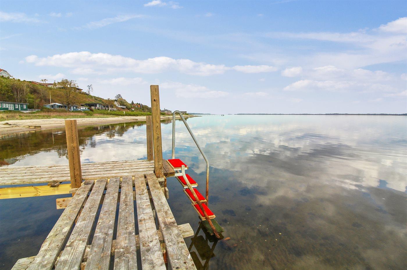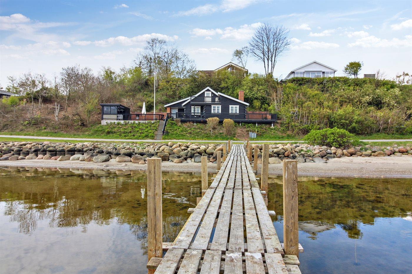 Sommerhus med fjordudsigt og badebro ved Lyby Strand