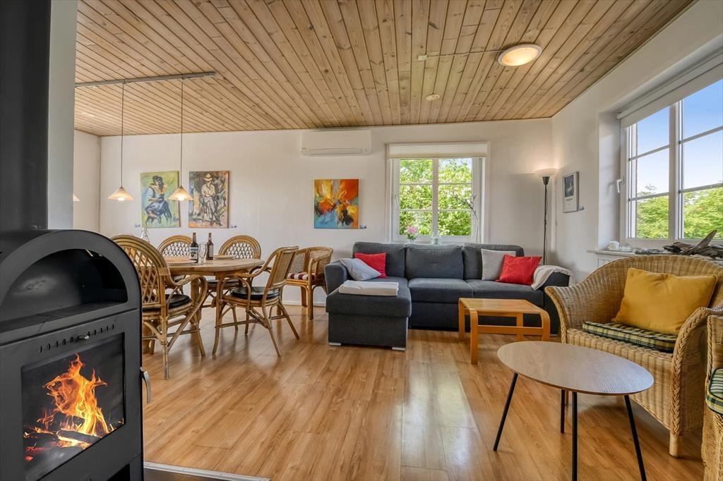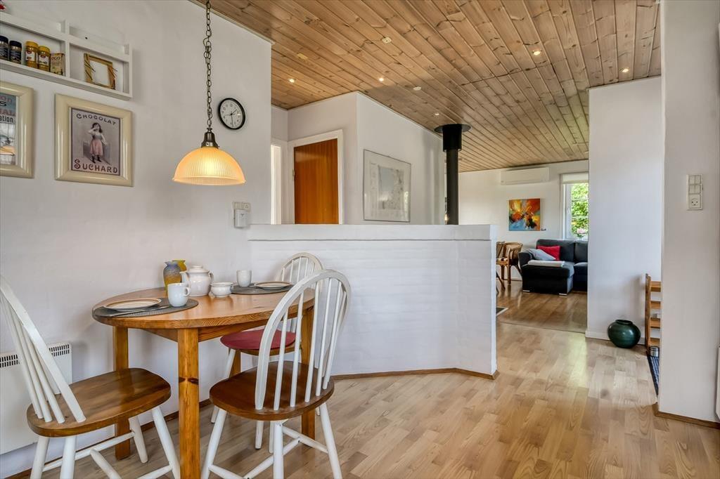 Når du træder indenfor i huset på Lydumvej 88, mødes du af en lys og indbydende atmosfære, der lægger op til samvær og gode stunder. I stuen kan du slå dig ned i sofaen med en bog, mens børnene leger på gulvet, eller hele familien kan samles til et spil kort og lange samtaler, der varer til langt ud på aftenen. Køkken og spiseplads hænger naturligt sammen med opholdsrummet, så duften af aftensmaden breder sig og gør det hele endnu mere hyggeligt. Når mørket falder på, er det rart at kunne trække sig tilbage til sommerhusets soveværelser, der giver både store og små ro og privatliv, inden en ny feriedag venter.