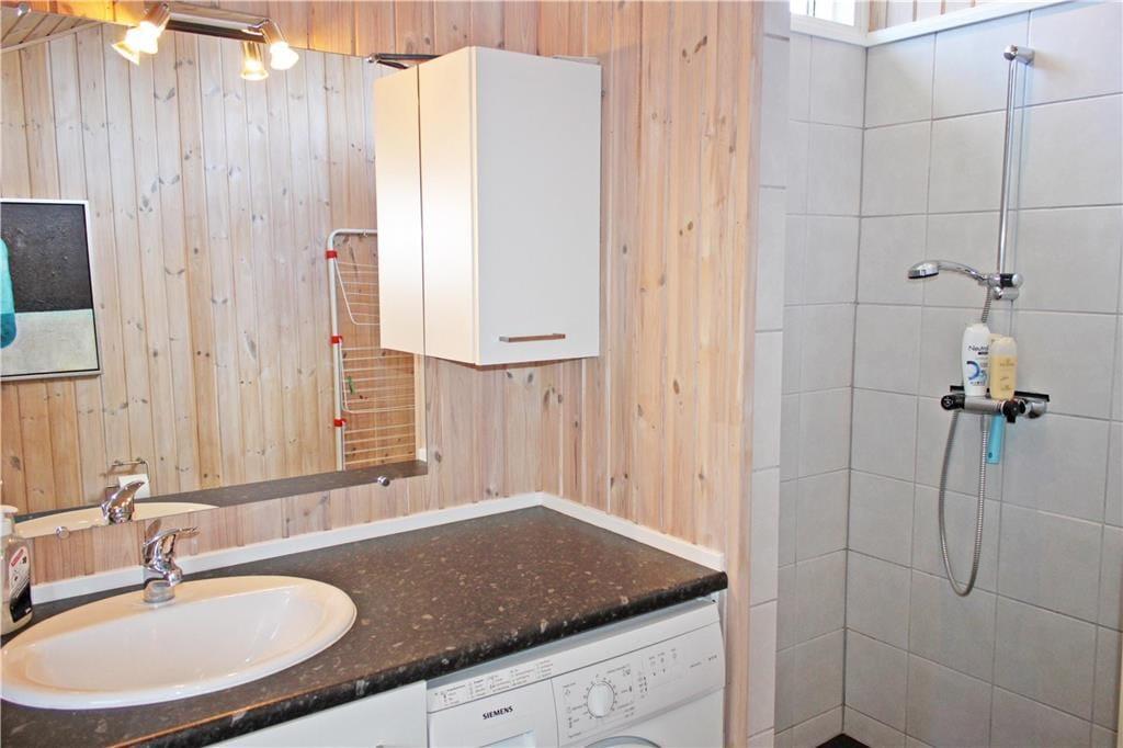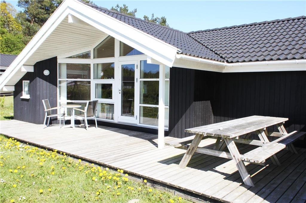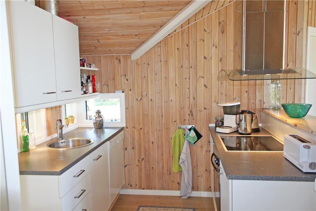 Det moderne indrettede sommerhus er opført i 2007, og det har en skøn atmosfære med lyse trægulve, store vinduer og loft til kip. Et veludstyret køkken med bardisk er integreret med stuen, som har fladskærms-tv, pænt møblement og endda en hyggelig alkove. Sidstnævnte er perfekt til en læsestund på langs i løbet af dagen, og den kan også bruges til overnatning, hvis ikke I fordeler jer på husets tre soveværelser, hvoraf to er med dobbeltseng og det tredje med to enkeltsenge. Endelig er det flotte badeværelse med bruser, vaskemaskine og gulvvarme med til at fuldende planløsningen.