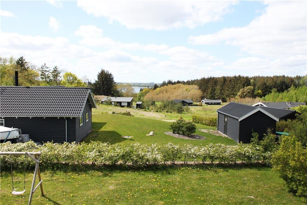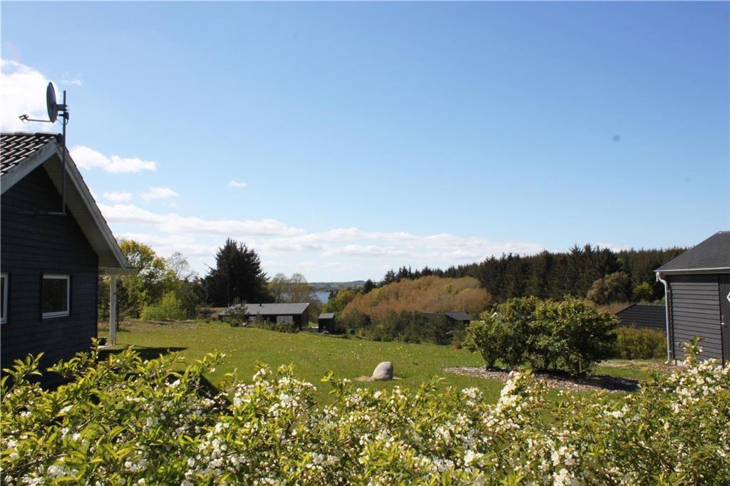 Fra stuen har I adgang til en stor og delvist overdækket terrasse, der ligger godt i forhold til både solen og udsigten. Her kan I slå jer ned med en god kop kaffe eller en kølig drink, mens I suger det flotte landskab til jer og nyder freden i det rolige sommerhusområde. På den anden side af huset har I endnu en terrasse, og til børnene er der gyngestativ på den 1200 m2 store grund.