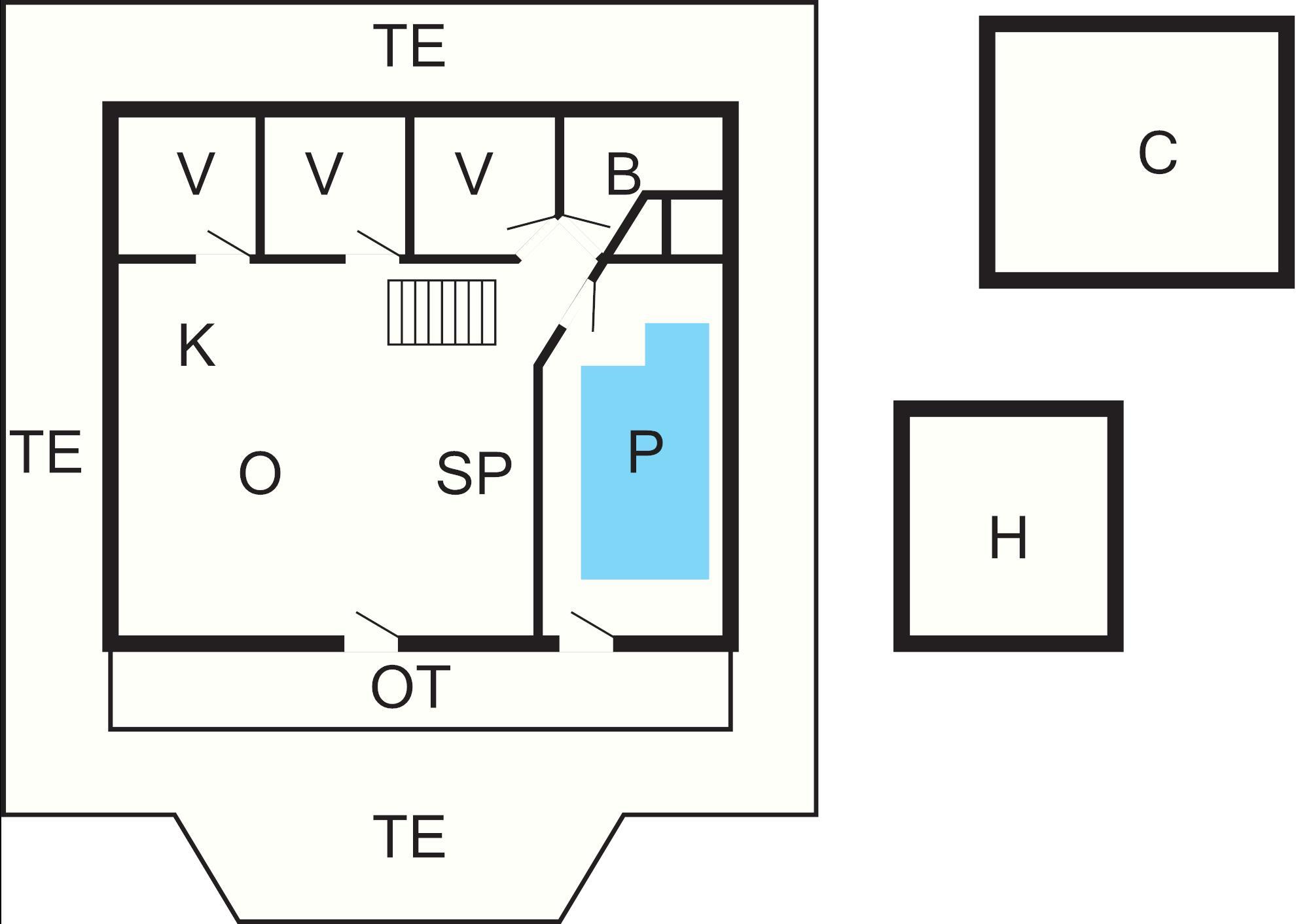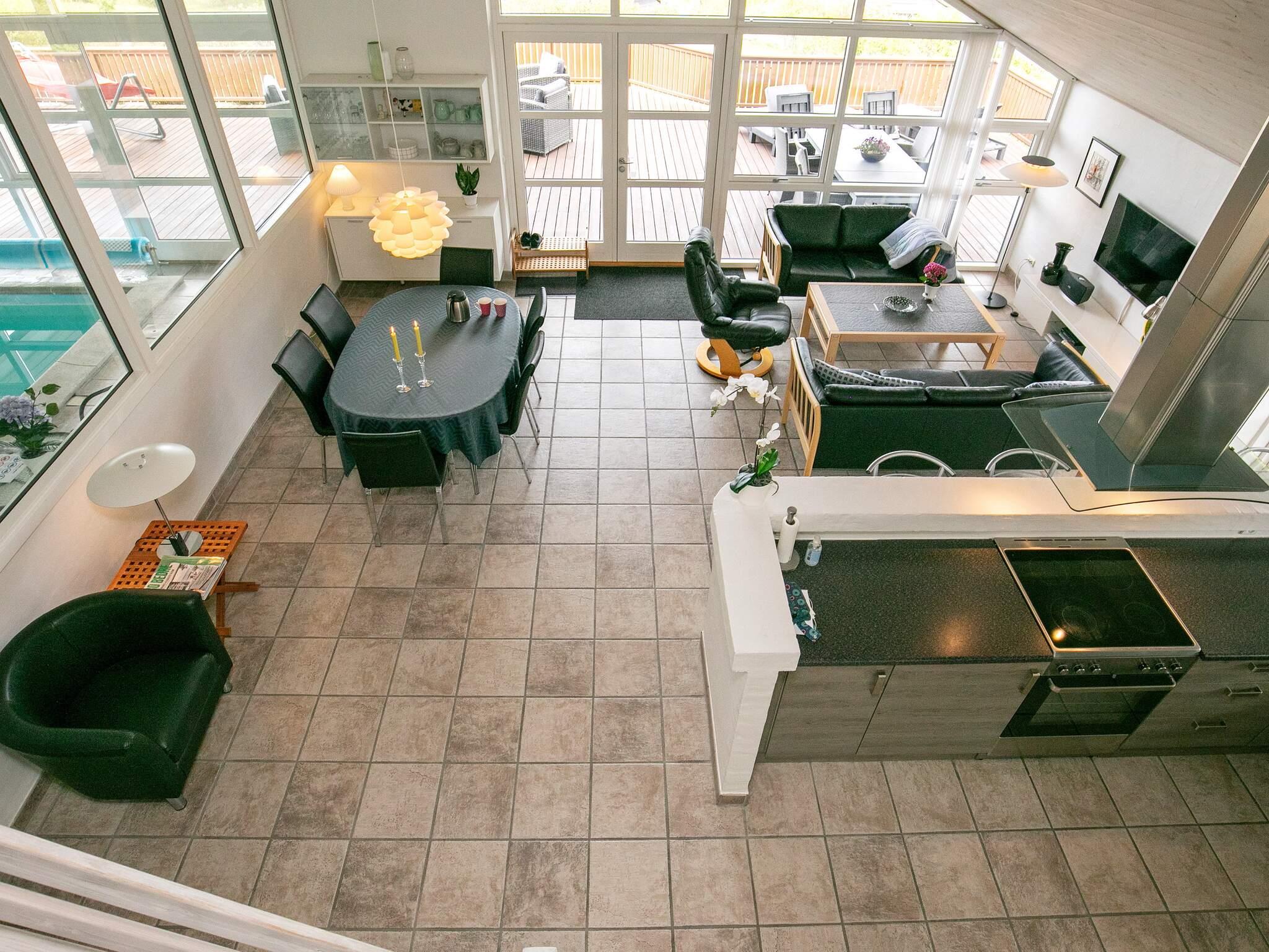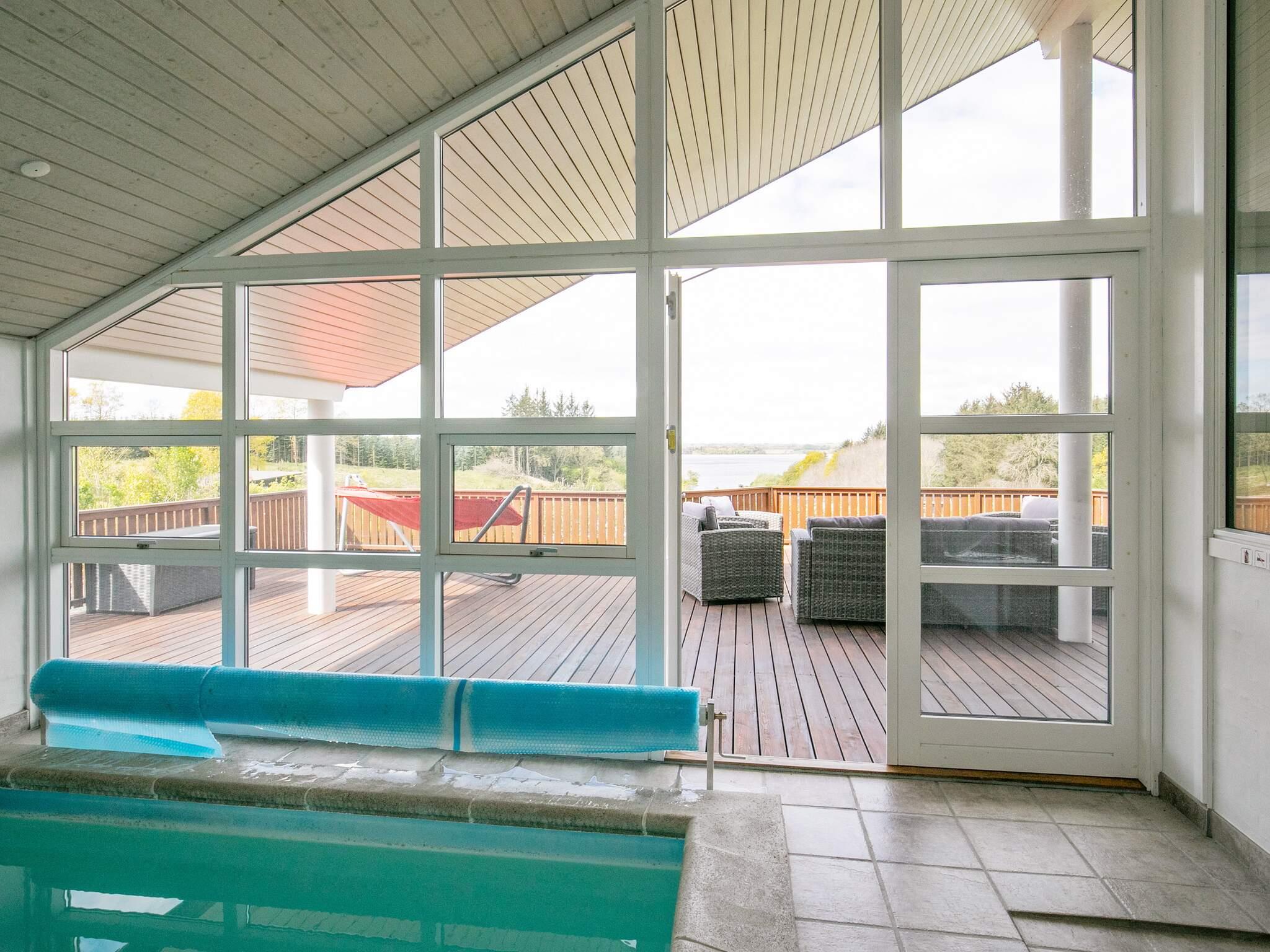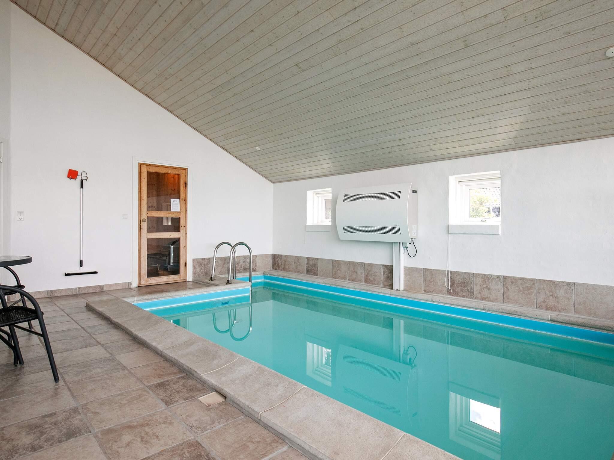 Den 12m2 store swimmingpool er indendørs og har en svømmetræner. I den ene ende af poolrummet finder man saunaen, som er til 2 personer. Fra poolrummet er der direkte udgang til den store terrasse.