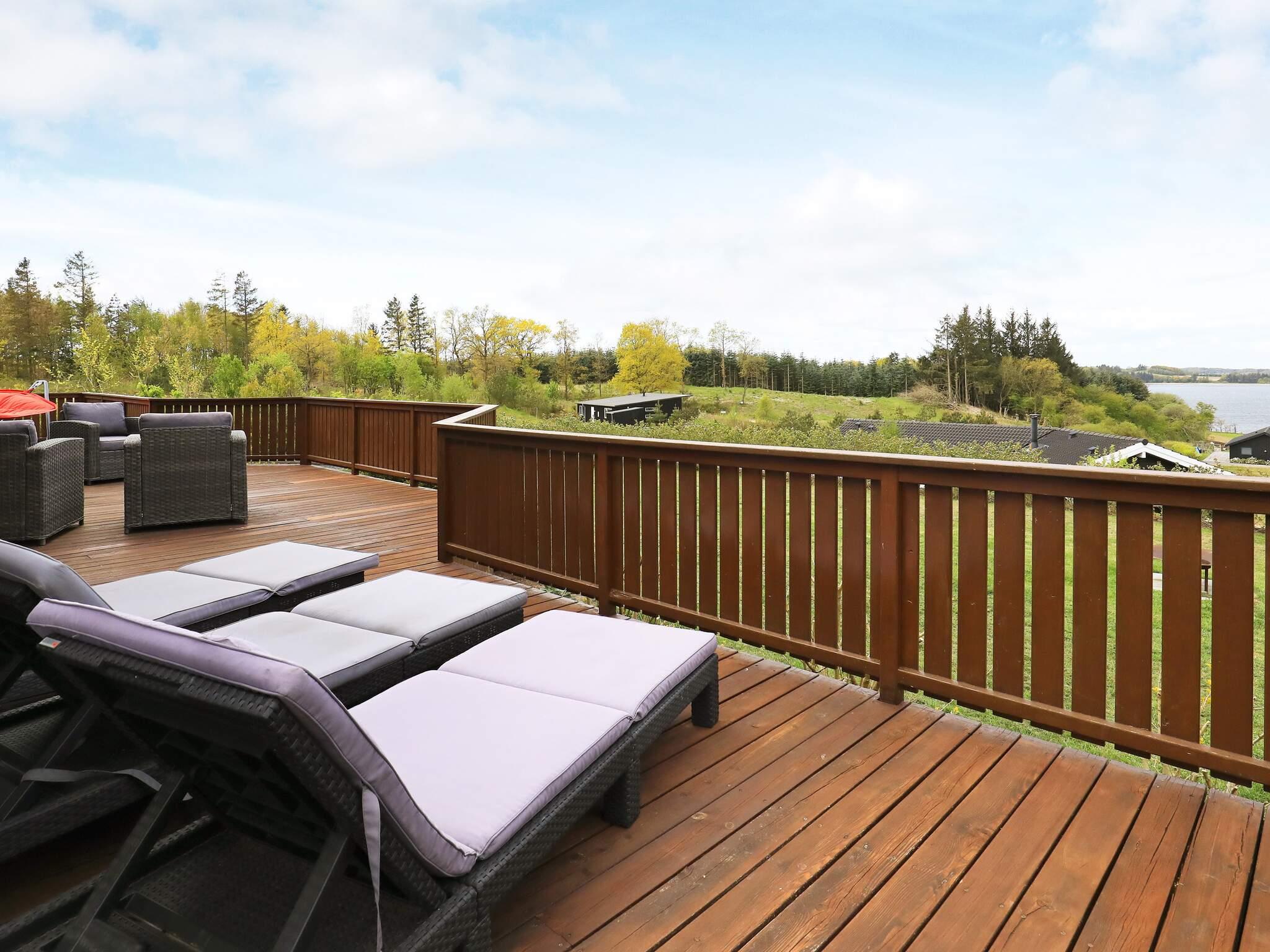 Højt beliggende sommerhus med swimmingpool, sauna og fantastisk panoramaudsigt over fjorden ved Lynderup.