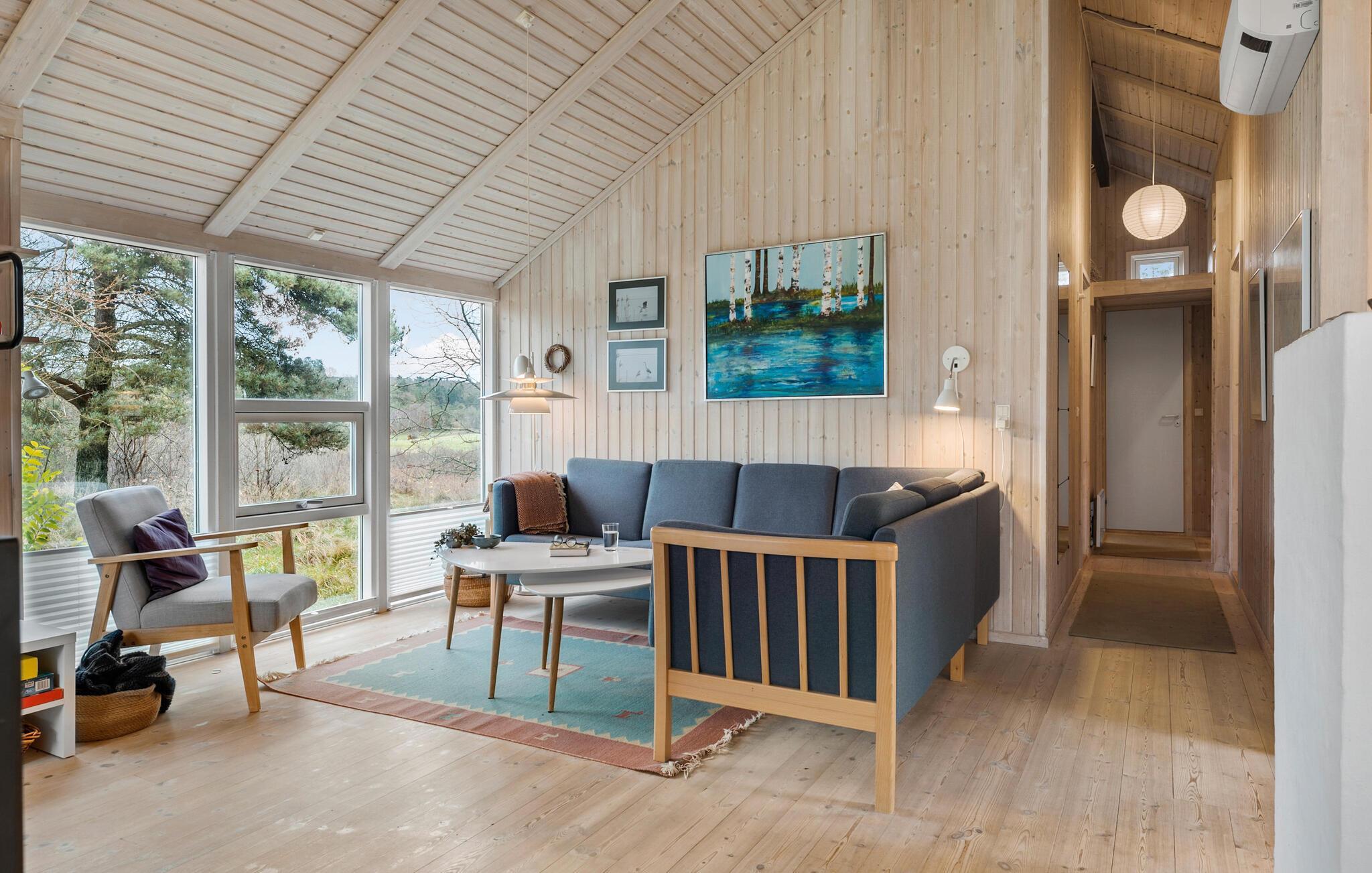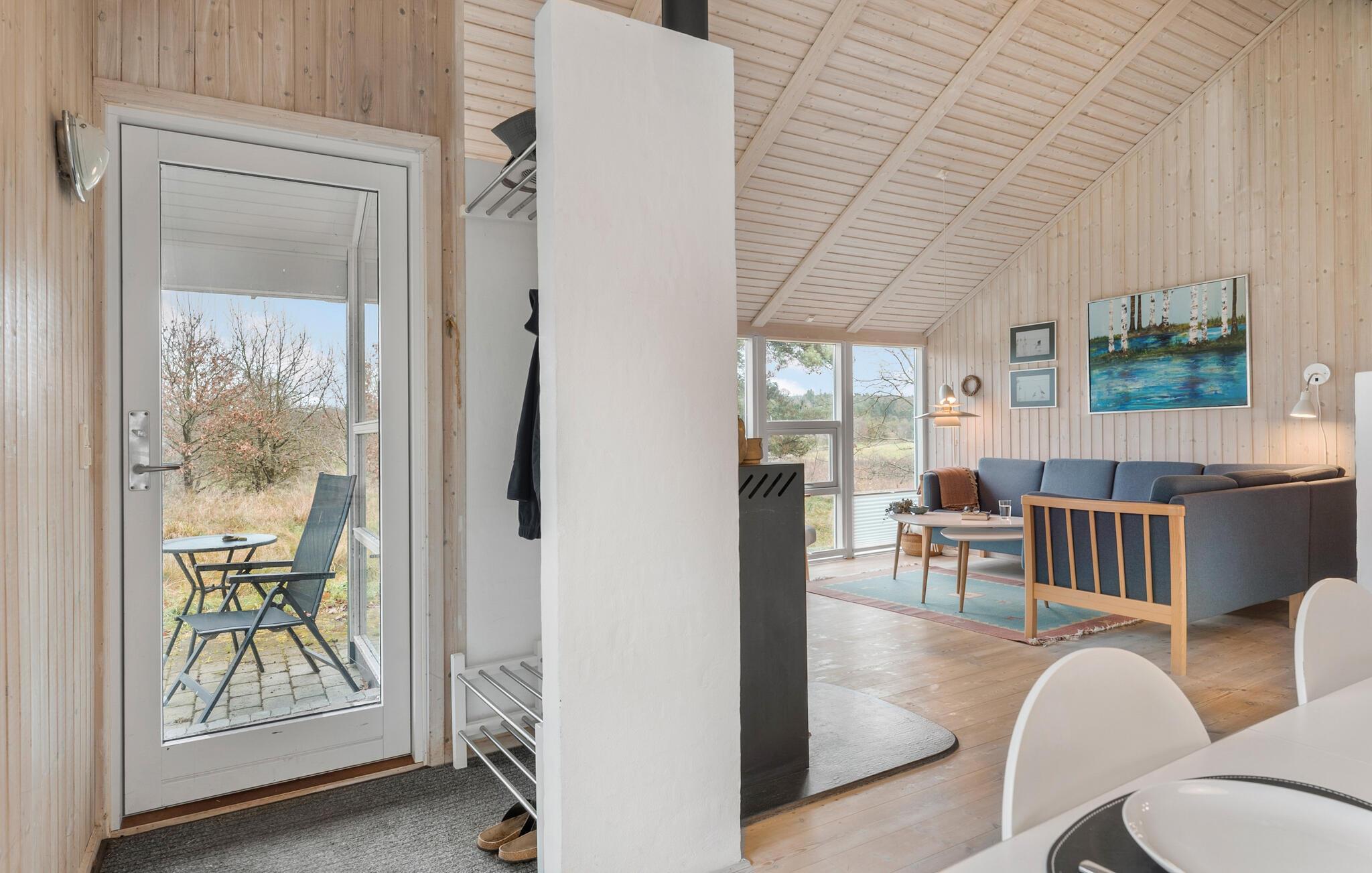 Lad jer fortrylle af charmen ved dette hyggelige sommerhus og hold en dejlig ferie på Lynderup Strand ved Hjarbæk Fjord. Så snart I træder ind i huset, vil I blive imponeret over den lyse og moderne indretning. Den åbne opholdsstue med højt til loftet i træ og store vinduespartier skaber en indbydende atmosfære. Find jer godt til rette i de komfortable sofaer foran pejsen og nyd den hyggelige varme på kølige aftener. Køkkenet har alt hvad I skal bruge til at tilberede lækre måltider, mens spisepladsen giver plads til samvær.