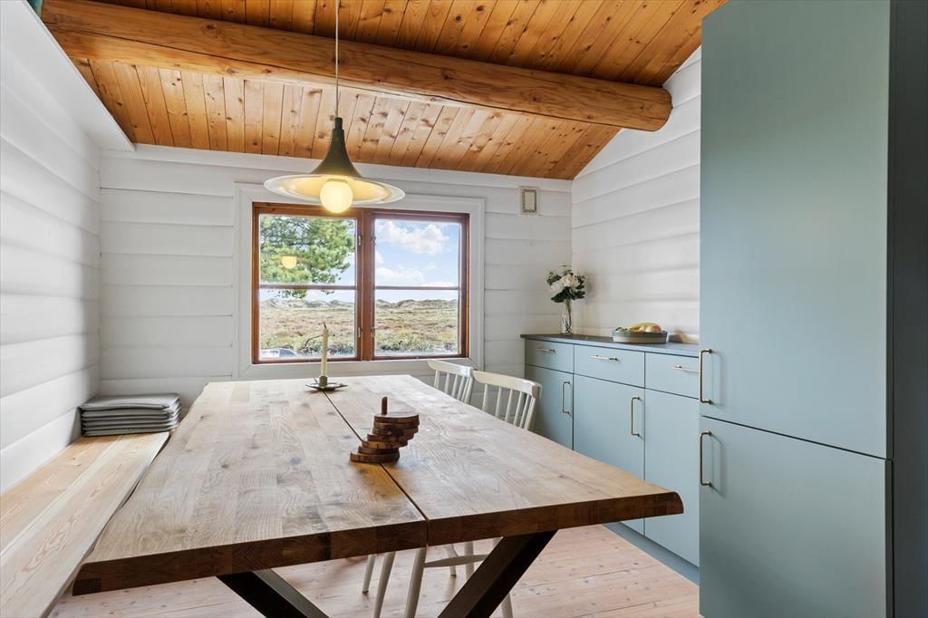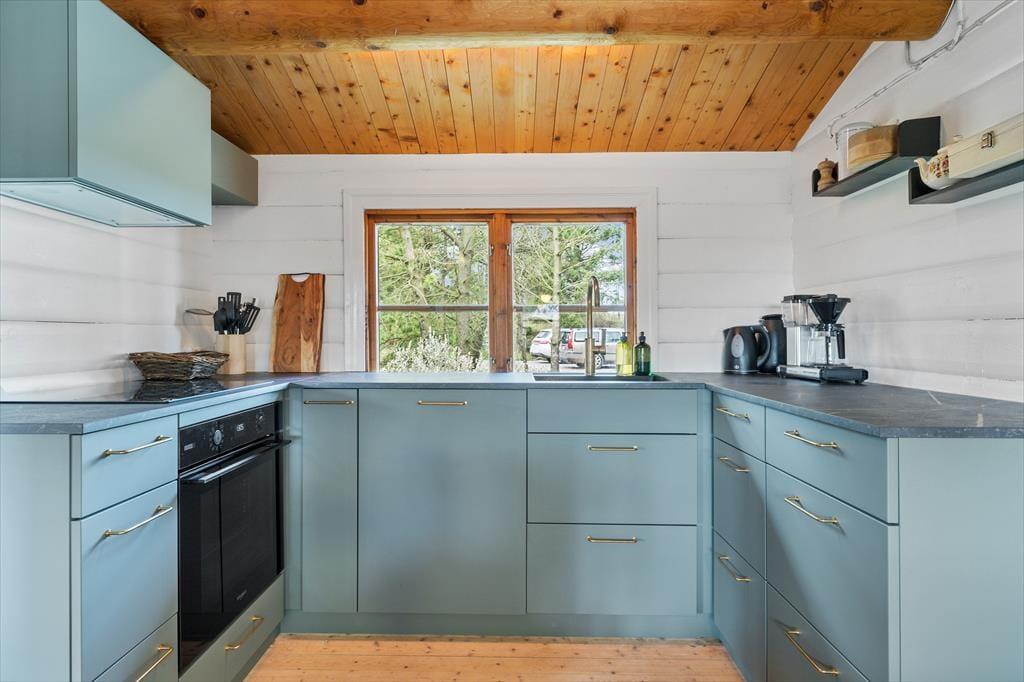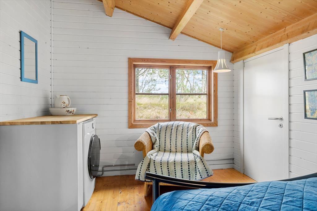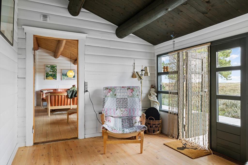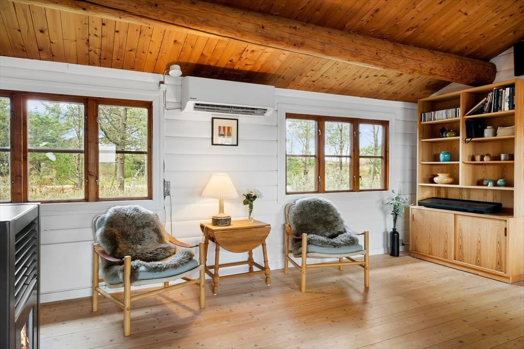 Sommerhuset byder dig velkommen med en varm og hyggelig atmosfære. Her er plads til afslapning og fordybelse, mens du mærker roen sænke sig. Med en brændeovn i stuen kan du skabe hygge og varme på de køligere aftener, og den energibesparende varmepumpe sikrer et behageligt indeklima året rundt. Huset har også en dejlig udestue, hvor du kan nyde den smukke udsigt over de naturskønne omgivelser, uanset vejret. Med udgangen fra udestuen direkte til terrassen er det nemt at lade naturen være en del af hverdagen, selv indendørs.