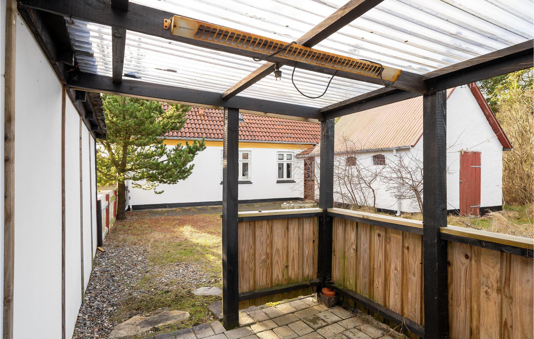 Huset ligger på en stor naturgrund, der ligger tæt på en skov og har en åben terrasse, hvor I kan tilbringe dagen med at grille eller blot læse en god bog. Selvfølgelig har I havemøbler og en grill til rådighed.