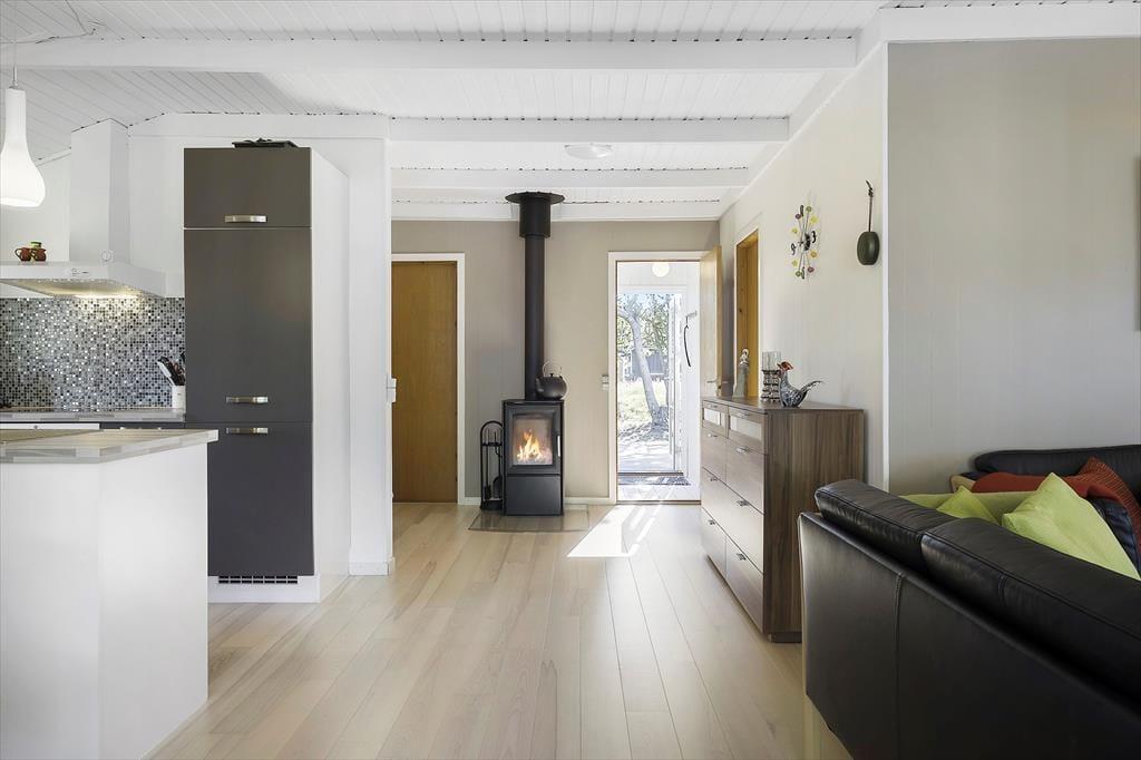 De 68 m2 er supergodt udnyttet i sommerhuset, der fremstår pænt og velholdt efter seneste renovering i 2018. Annekset på 10 m2 er indrettet i samme tjekkede stil som selve huset, så det kan også fint bruges, hvis I er mange, der gerne vil holde ferie sammen. I alt er der sovepladser til otte personer fordelt på tre soveværelser og det førnævnte anneks, og med en vaskemaskine i entréen, et rummeligt badeværelse og et veludstyret køkken fuld af gode hvidevarer er der ogsåtaget højde for diverse praktikaliteter, der får ferielivet til at glide. Kort sagt skulle der gerne være god tid til at slappe af i stuen, som er et dejligt opholdsrum med brændeovn, fladskærms-tv og havedør ud mod terrassen.
