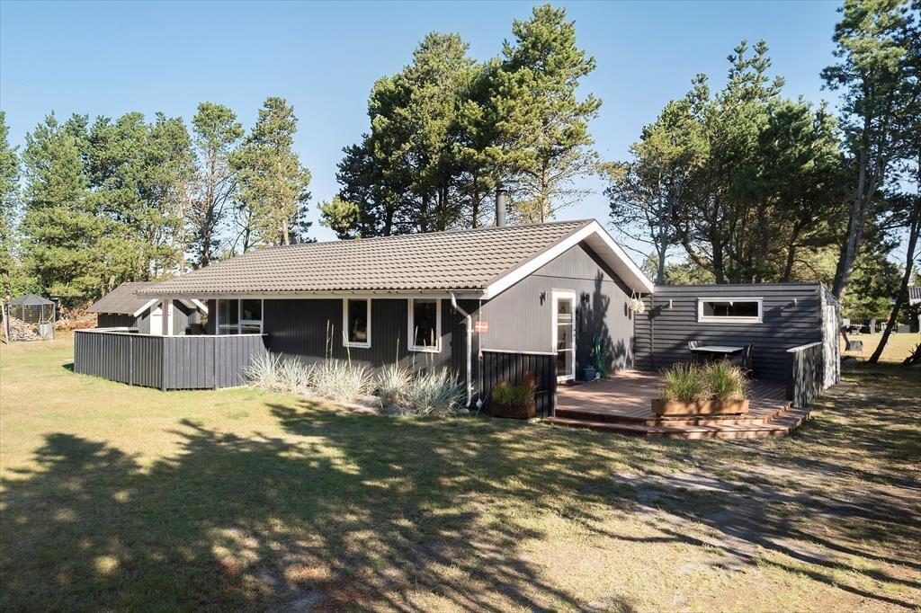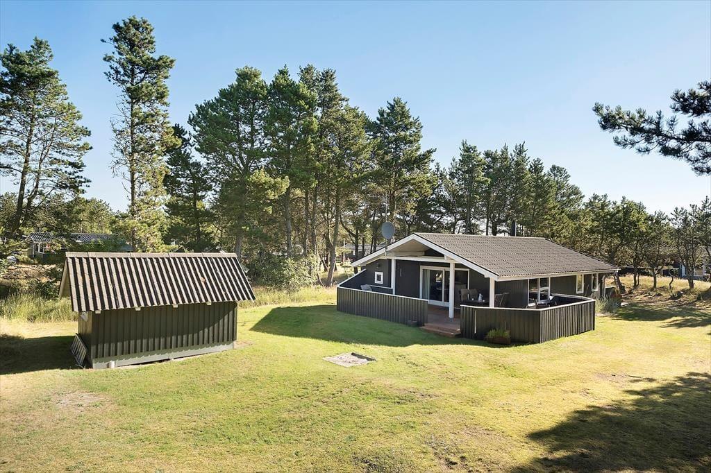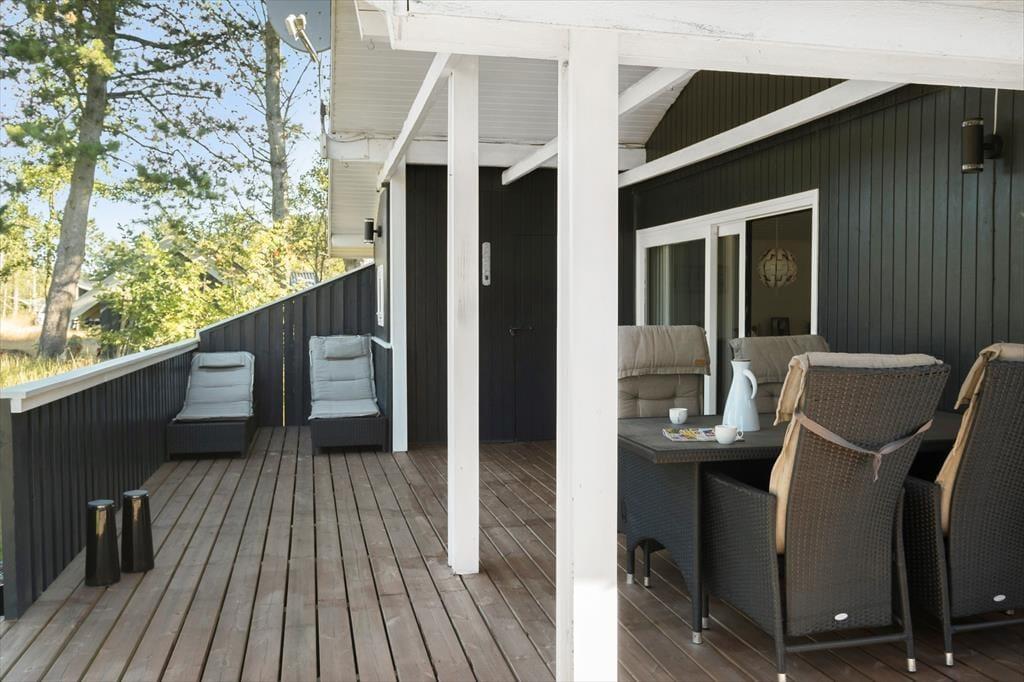 Både øst og vest for sommerhuset ligger et stort terrasseområde, så hvis I drømmer om at indtage både morgenmaden, frokosten og den friskgrillede aftensmad ude i solen, kan det sagtens lade sig gøre. I kan også sætte jer under overdækningen, hvis I trænger til skygge, når I slapper af – og har I derimod lyst til at komme op i omdrejninger, er der god plads til at lege og spille bold på græsplænen.