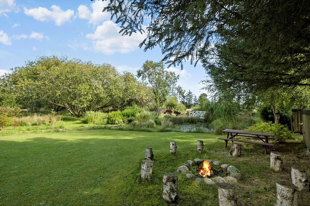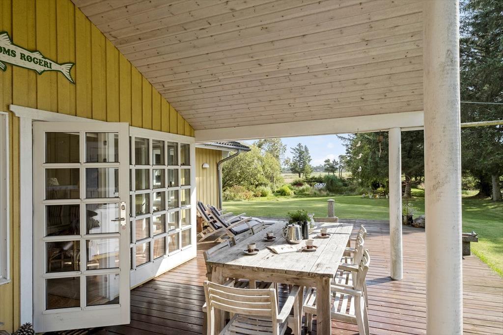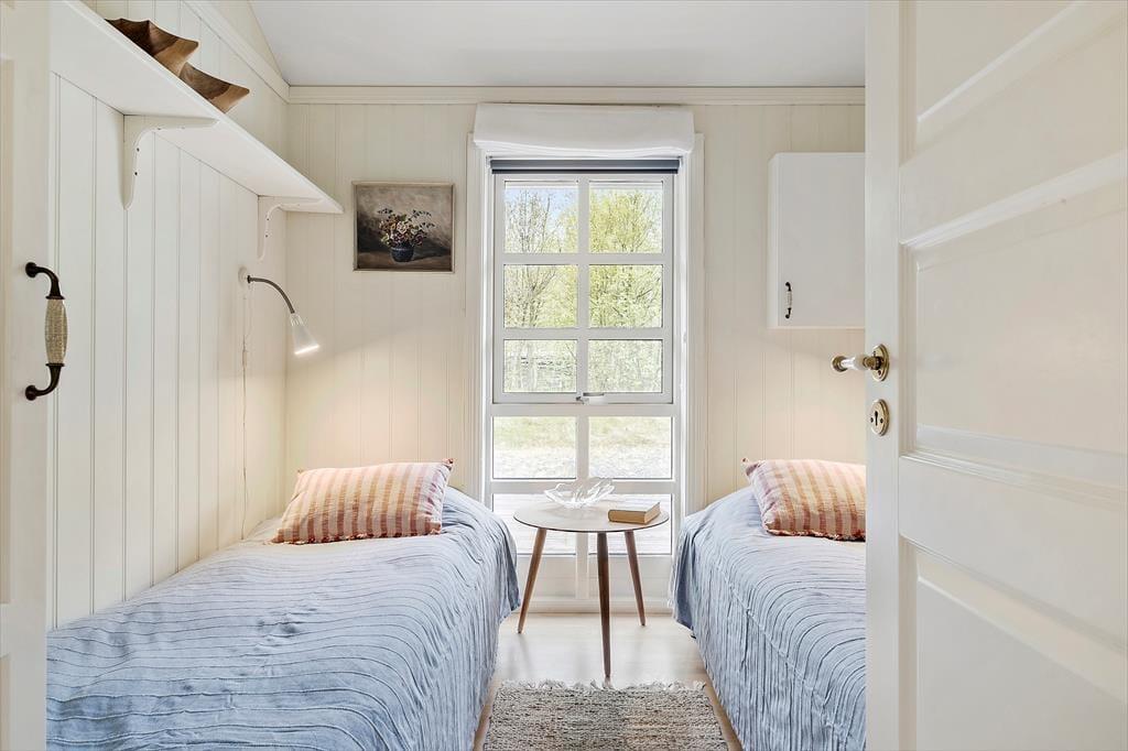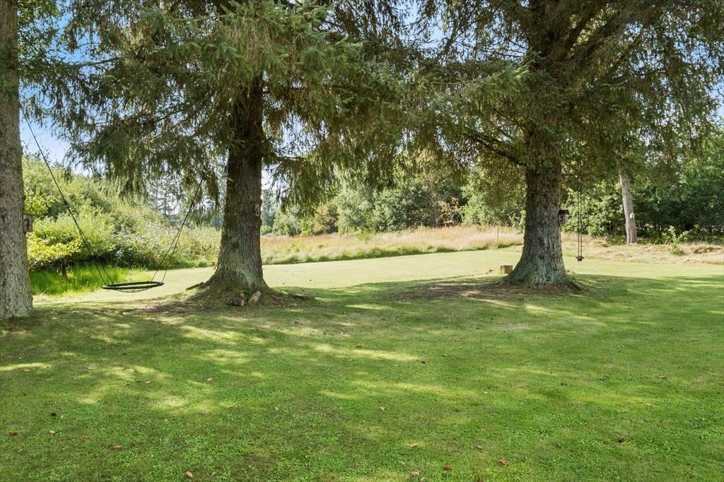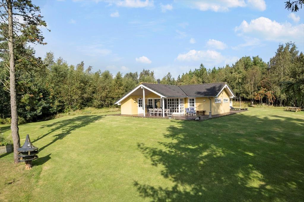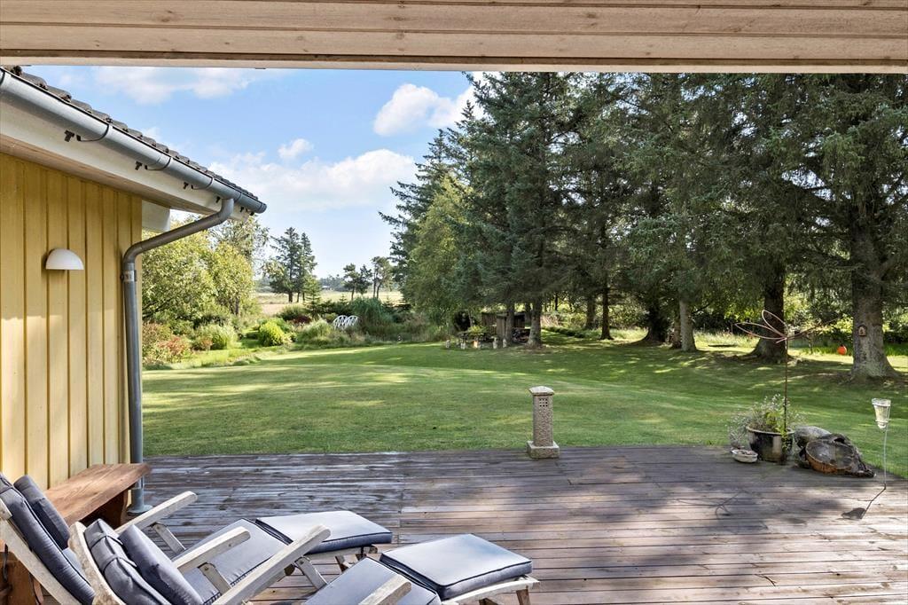 Den store naturgrund omkring sommerhuset er et paradis for naturelskere. Her kan du nyde det rige fugleliv og måske få øje på en hare, der hopper forbi. Den ugenerede beliggenhed sikrer, at du kan slappe af i fred og ro, uden at blive forstyrret af naboer. På den rummelige terrasse kan du nyde solens stråler hele dagen eller finde skygge under de høje træer. Der er masser af plads til både leg og afslapning, og børnene kan løbe rundt og lege på græsplænen, mens du slapper af med en god bog i en af de komfortable havemøbler. Når aftenen falder på, kan I samle familien til en hyggelig grillmiddag på terrassen og nyde den fredfyldte stemning.