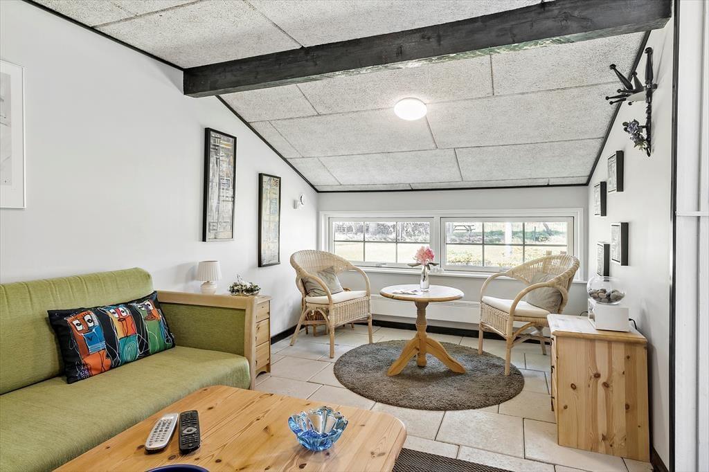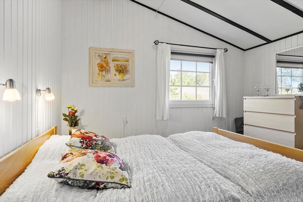 Når du træder indenfor i sommerhuset, bliver du mødt af en gennemført indretning med smagfulde detaljer, der emmer af skandinavisk charme. De lyse rum er indrettet med sans for hygge og komfort, og den åbne planløsning skaber en skøn forbindelse mellem køkkenet og stuen hvor de store vinduespartier sørger for en helt særlig atmosfære. Her kan du og dine nærmeste slappe af i sofaen med udsigt til haven, mens børnene hygger sig med en god film på fladskærmen, eller I kan fordybe jer i brætspil ved spisebordet, mens aftenens måltid simrer i køkkenet. Sommerhusets gode anneks giver jer ekstra fleksibilitet, da det kan bruges som hyggeligt sovested for de større børn eller som en privat krog til et vennepar, der er med på ferie.