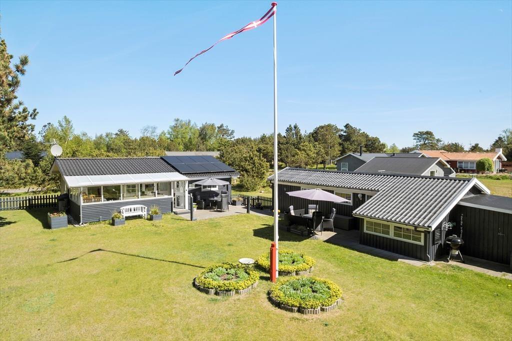 Udendørs venter en skøn, stor terrasse, hvor du kan bruge solrige dage og lune aftener i rolige og grønne omgivelser. Terrassen er anlagt, så du kan følge solens gang og finde lige præcis den plads, hvor du vil nyde dagens første kop kaffe eller en afslappet frokost. Om aftenen er grillen klar til at blive tændt, og her kan du lave alt fra friske majskolber til lækre steaks, mens familien leger på græsplænen eller slår sig ned i havemøblerne og nyder den fredelige atmosfære. Den fine have med græs og træer giver børnene rig mulighed for leg og aktiviteter i trygge omgivelser, og sommerhusets afslappede uderum inviterer til stille dage i naturens skød.