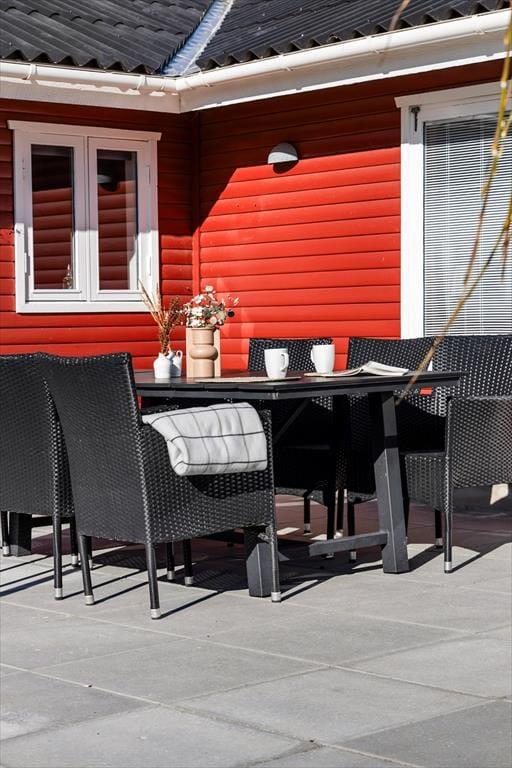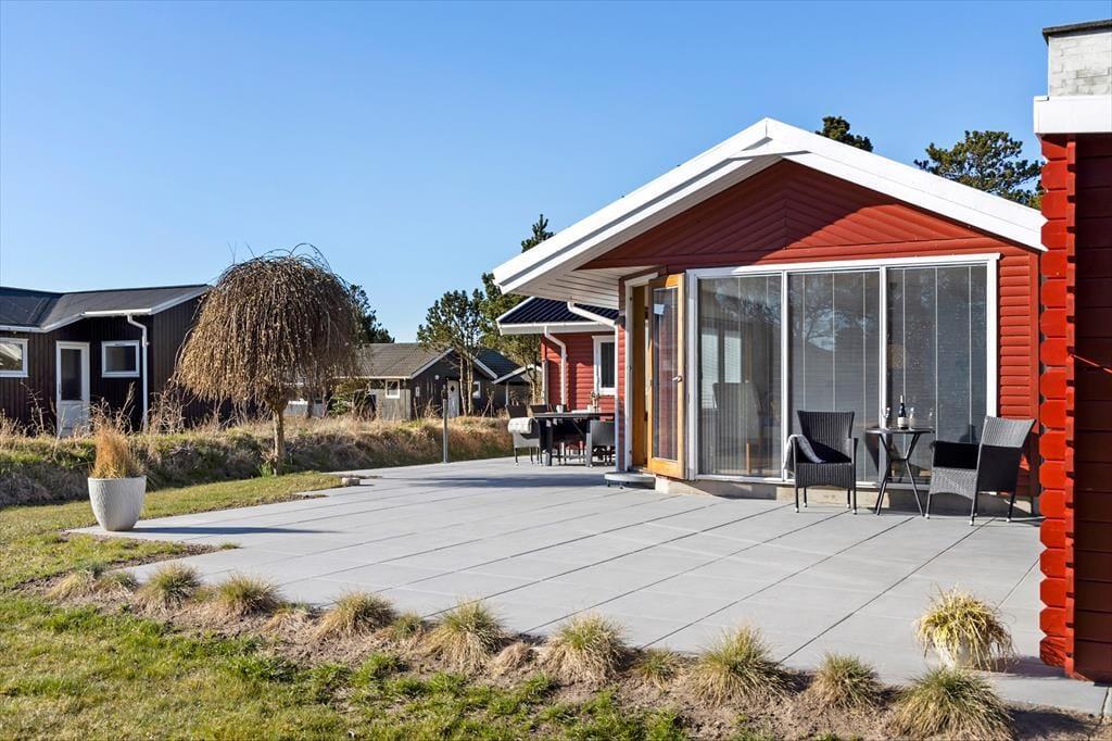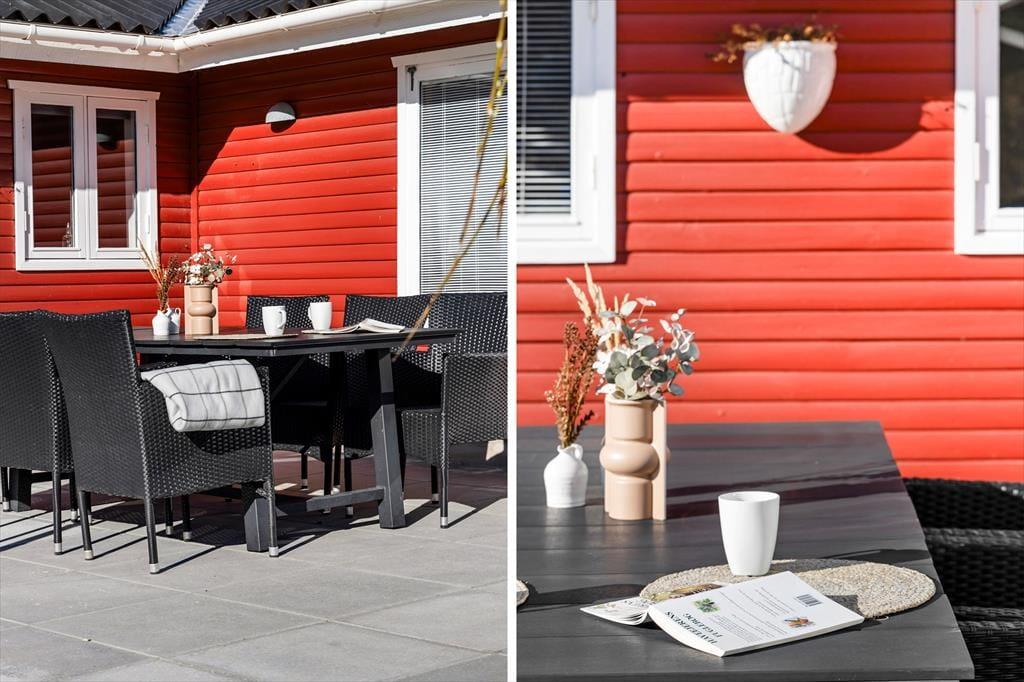Udelivet er mindst lige så indbydende som livet inden døre, og den nye sydvendte terrasse er helt klart et af sommerhusets store trækplastre. Her kan du starte dagen med solens første stråler i ansigtet og en lun croissant på tallerkenen, og når solen står højest på himlen, er det oplagt at smide sig i en liggestol med en kold drik inden for rækkevidde. Terrassen er stor og velegnet til både grillmiddage, afslapning og leg – og da huset ligger godt tilbagetrukket i et fredeligt område, kan du nyde roen og privatlivet i fulde drag. Der er masser af plads omkring huset, så børnene kan tumle og lege, mens de voksne bare læner sig tilbage og mærker feriestemningen brede sig.