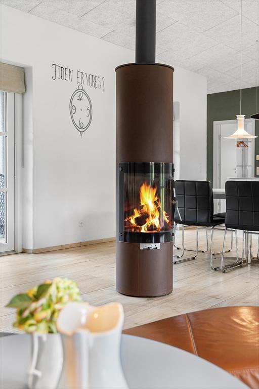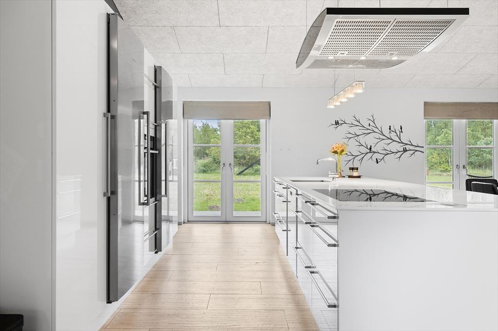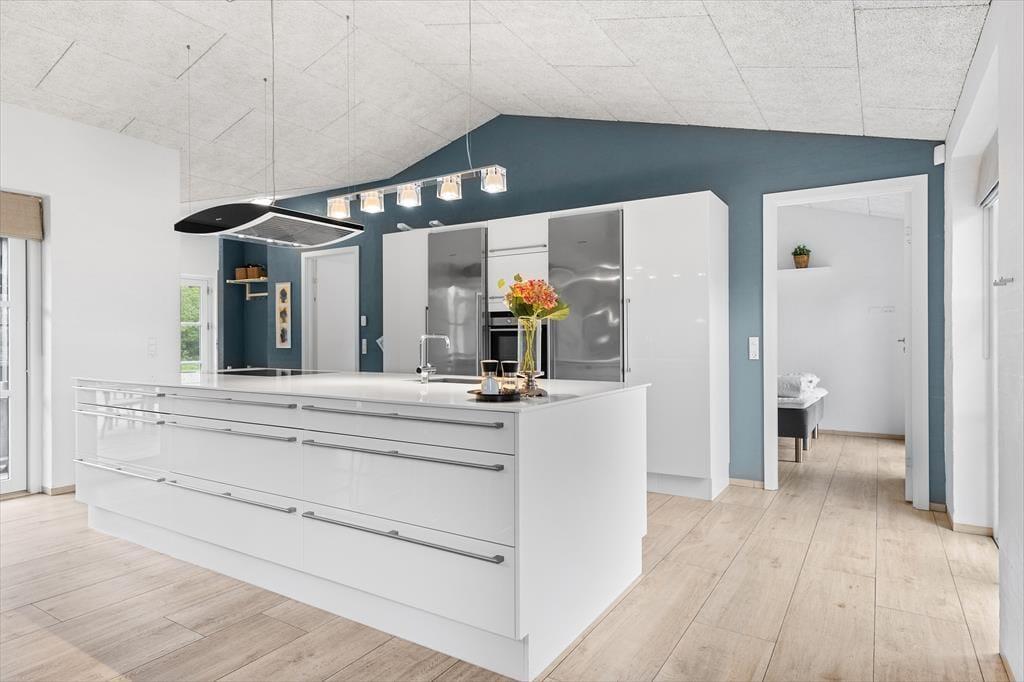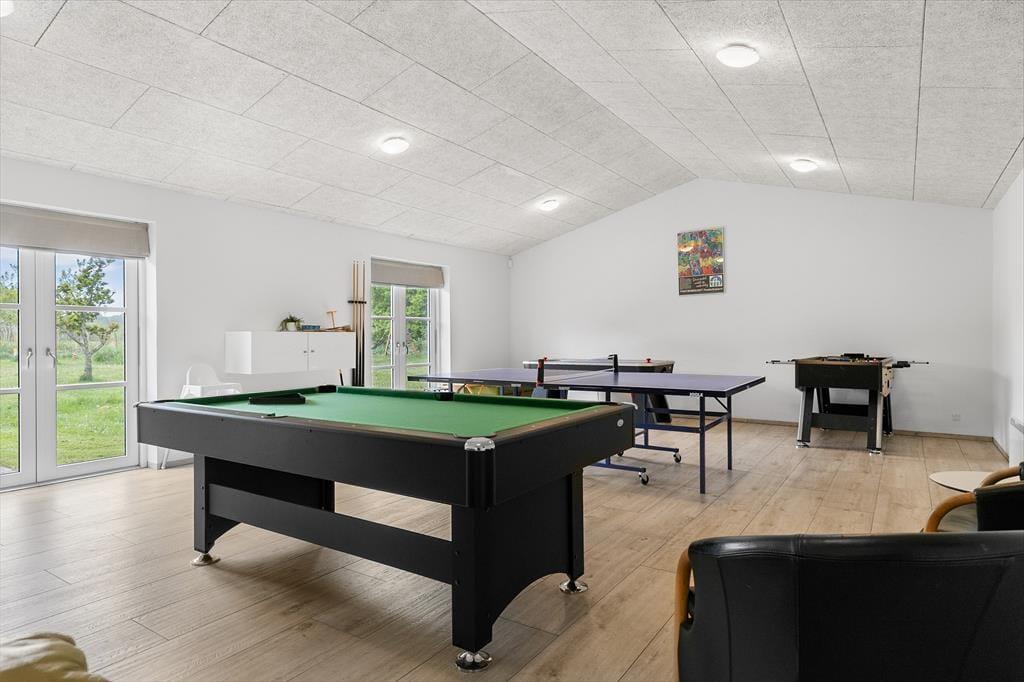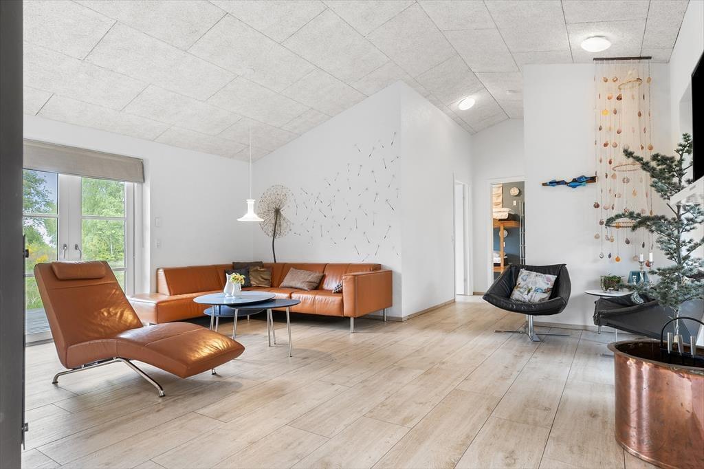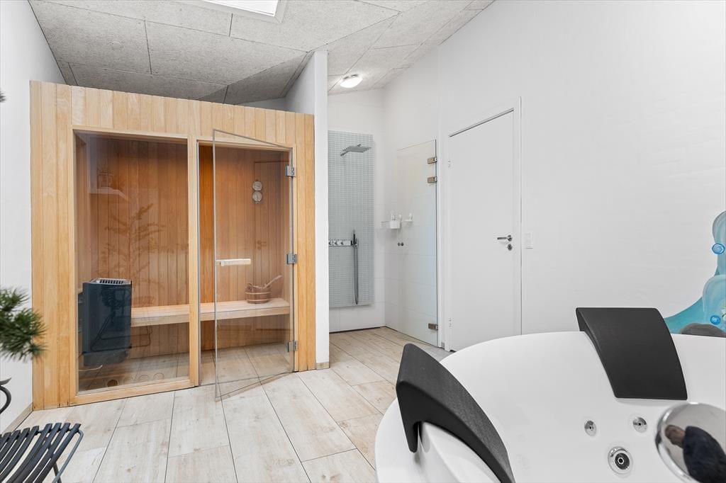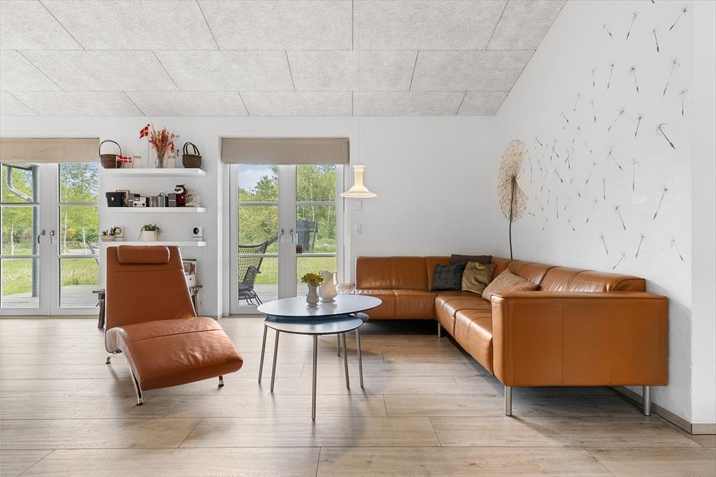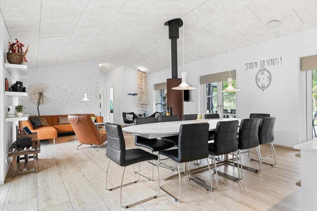 Allerede når du træder indenfor i sommerhuset, fornemmer du den imødekommende atmosfære. Indretningen er lys og venlig, og det veludstyrede opholdsrum inviterer til samvær på kryds og tværs. Der er god plads til at samles omkring spisebordet, når dagens måltider skal nydes, og bagefter kan I læne jer tilbage i sofaen med en film eller et brætspil – eller måske tænde op i brændeovnen og nyde den beroligende knitren, mens regnen trommer sagte på ruden. Når kroppen trænger til forkælelse, er wellnessafdelingen en skøn oase med både spabad og sauna, hvor du kan lade roen sænke sig helt. Uanset om I er en børnefamilie, et vennehold eller måske et par med hunde og god tid til at slappe af, er der herinde masser af muligheder for at finde jeres favoritplads og ferietempo.