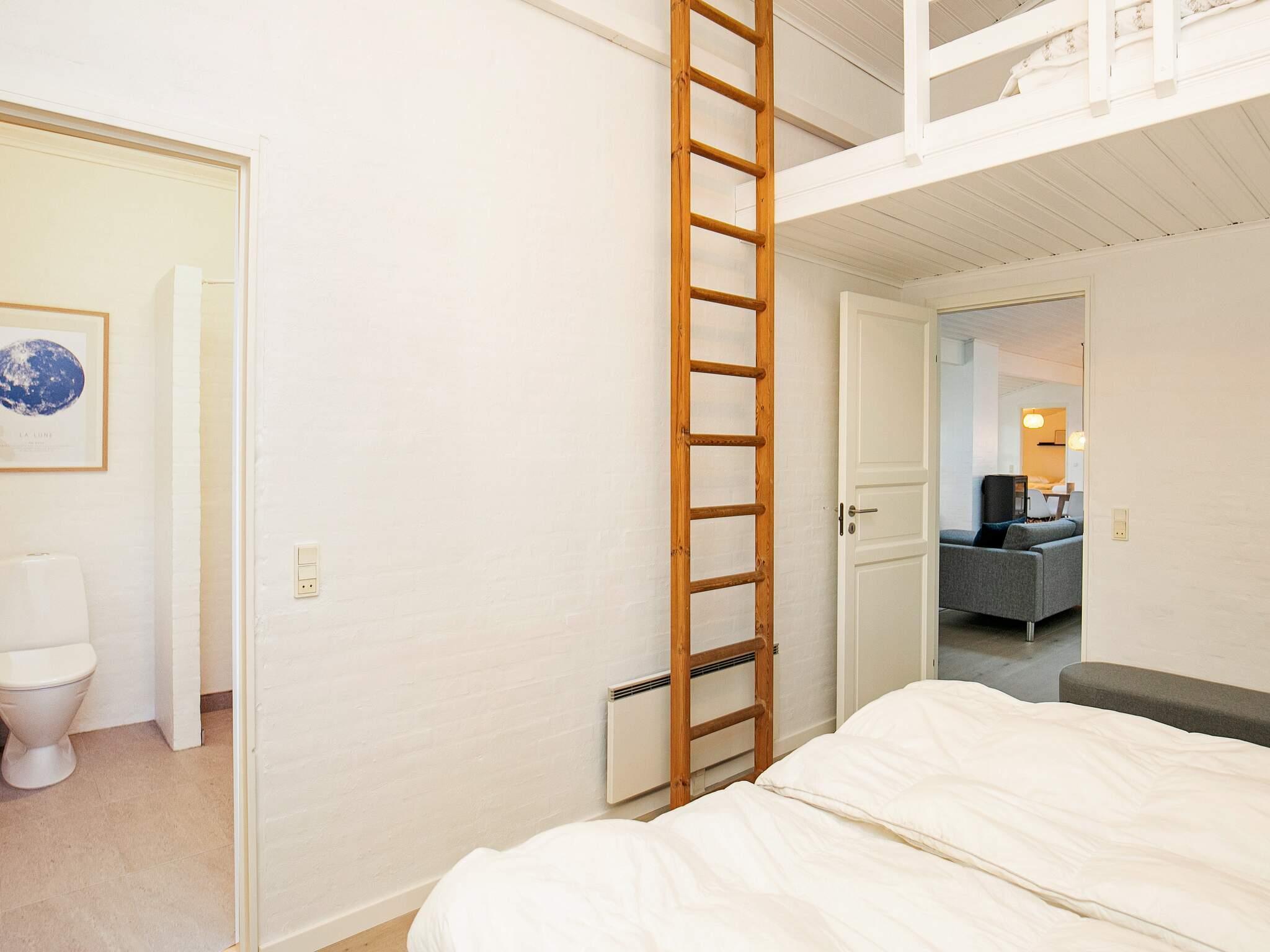 De fire soveværelser har dobbeltsenge og derudover har et af værelserne en hems med to opredninger. Det femte soveværelse er med to køjesenge med fire pladser i alt. Køjesengene måler 90x200.