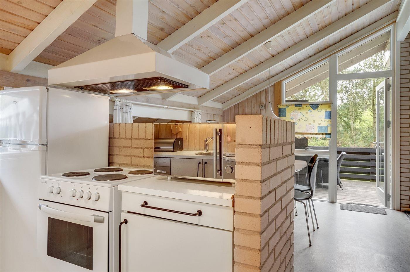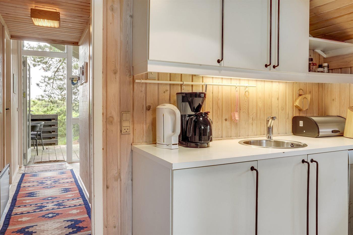 Køkkenet er udstyret med 1 køleskab. Der er 4 elkogeplader, bageovn samt opvaskemaskine.