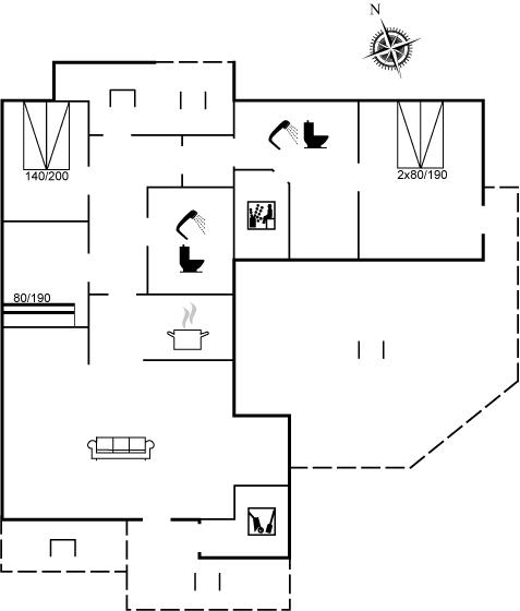 Der er i alt 3 soveværelser. Sovepladserne fordeler sig på: 4 sovepladser i dobbeltsenge. 2 sovepladser i køjeseng. Derudover er der 1 stk. barneseng.