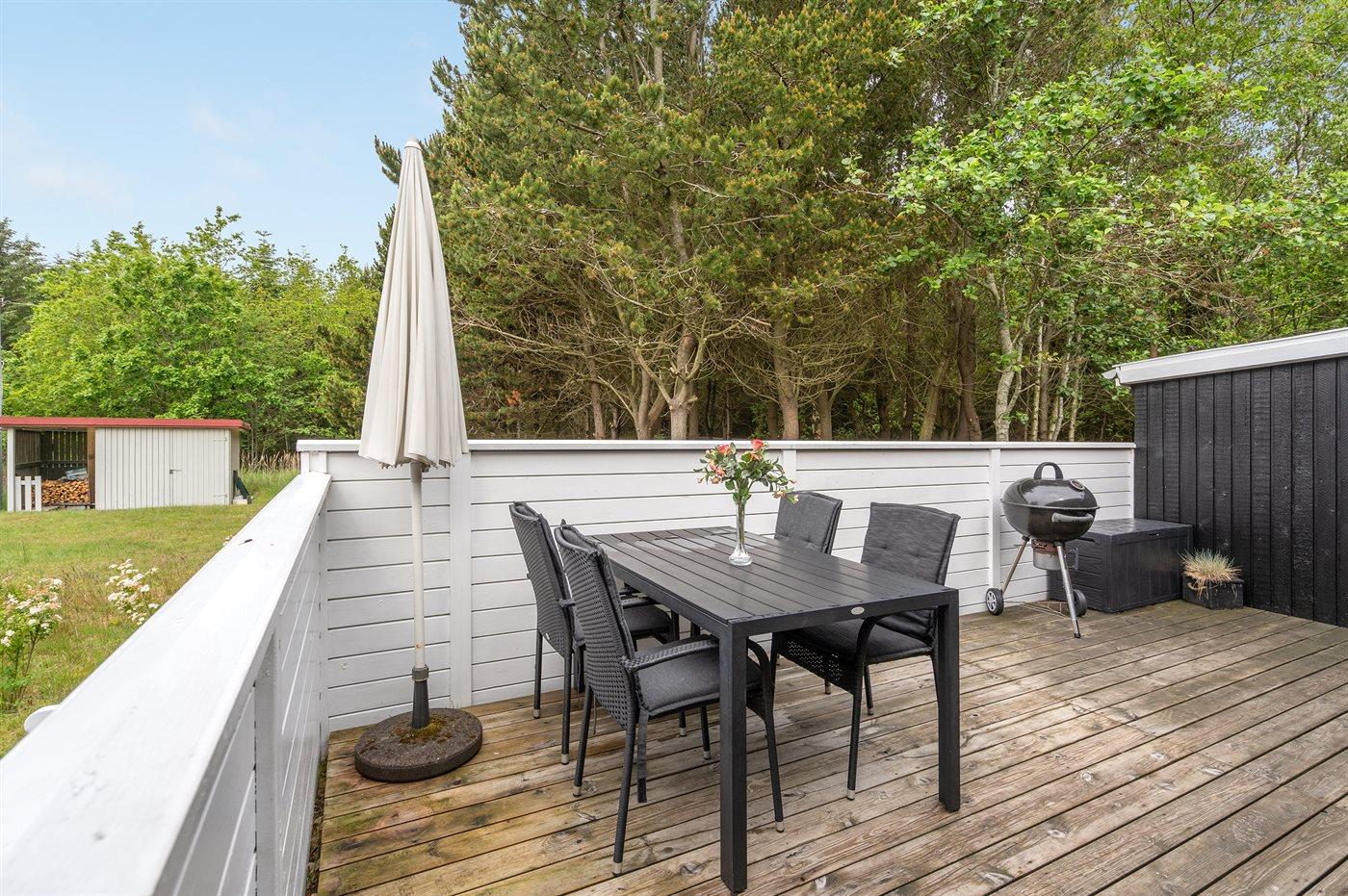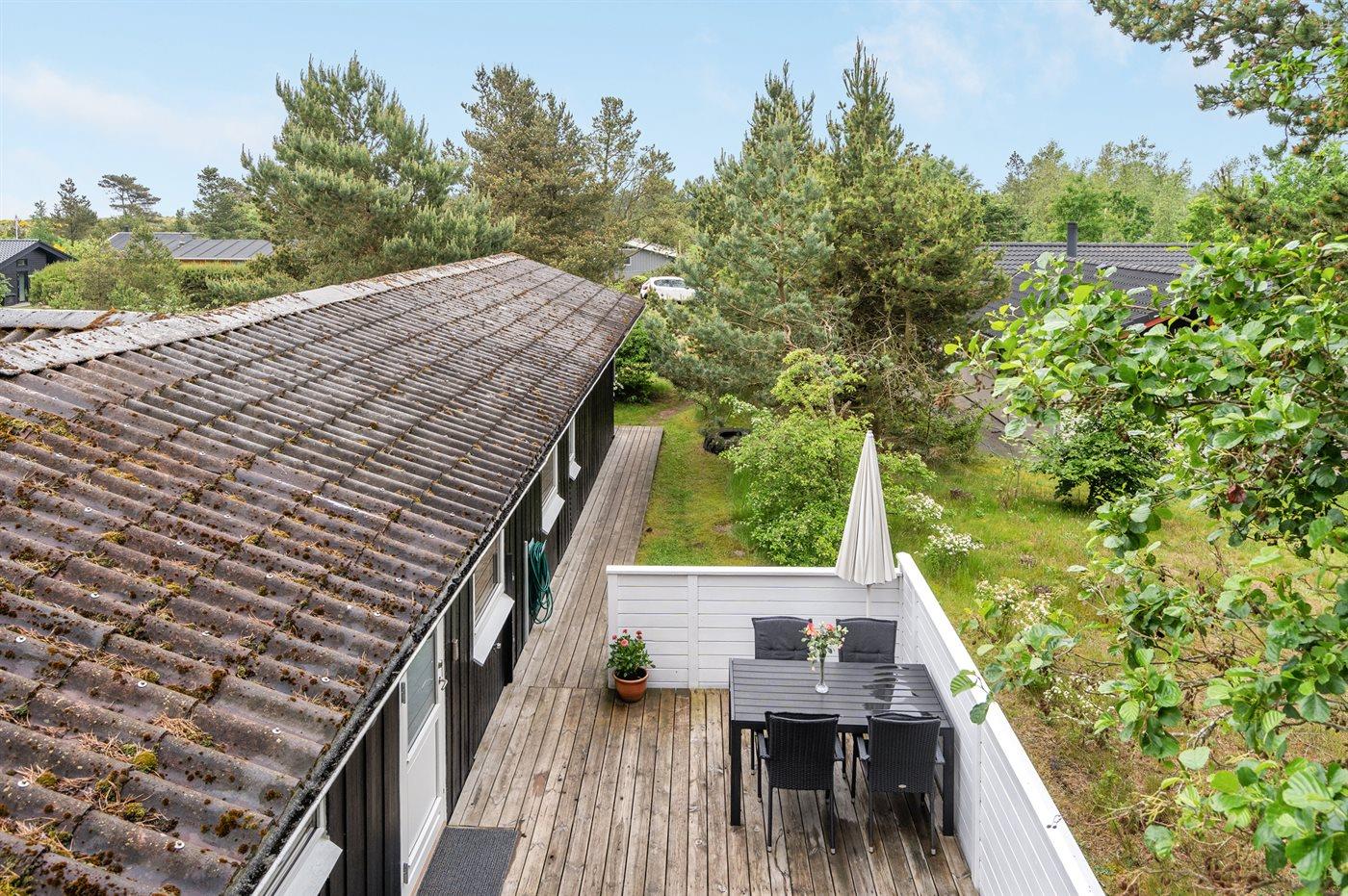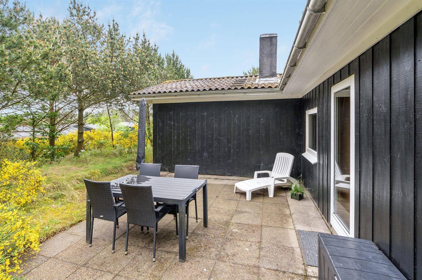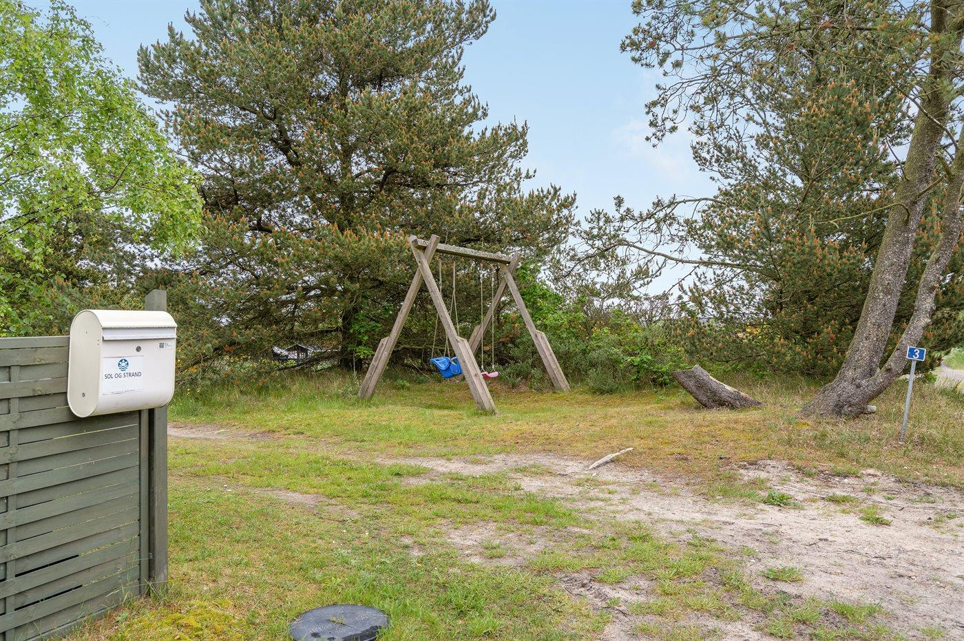 Ferieboligen er beliggende på en 1000 m² stor grund i skov/plantage. Der er 125 m til havet. Nærmeste forretning er beliggende i en afstand af 9300 m. Til ferieboligen hører 57 m² terrasseareal. Der er redskabsrum. Gynge. Sandkasse. Parkering ved ferieboligen.