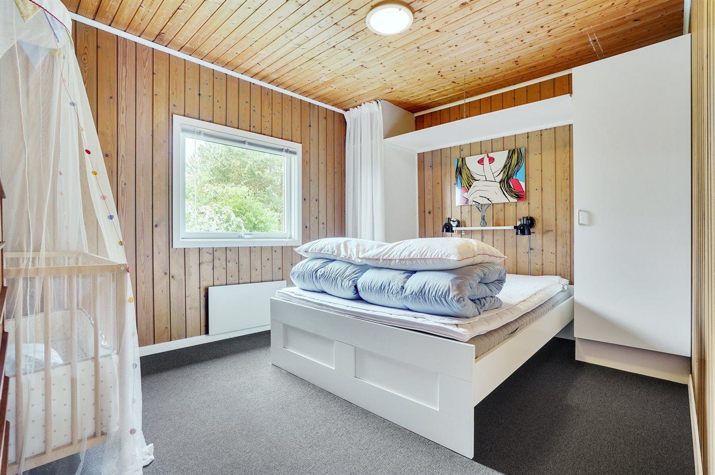 Der er i alt 4 soveværelser. Sovepladserne fordeler sig på: 4 sovepladser i dobbeltsenge. 3 sovepladser i enkeltsenge. Derudover er der 1 stk. barneseng.