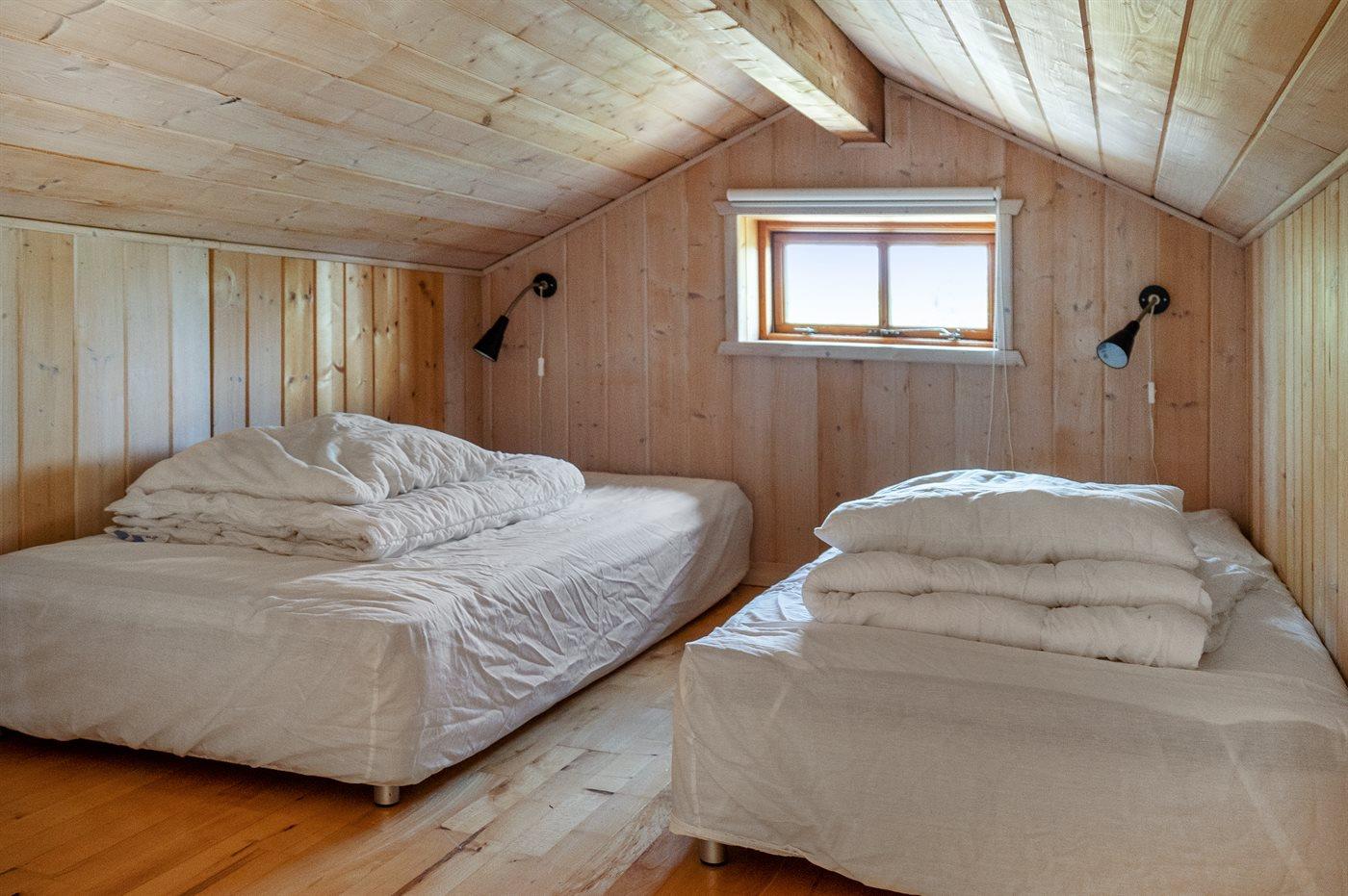 Der er i alt 3 soveværelser. Sovepladserne fordeler sig på: 4 sovepladser i dobbeltsenge. 2 sovepladser i enkeltsenge. 4 sovepladser på madrasser. 4 af disse sovepladser fordeler sig på 2 hemse. Derudover er der 1 stk. barneseng.