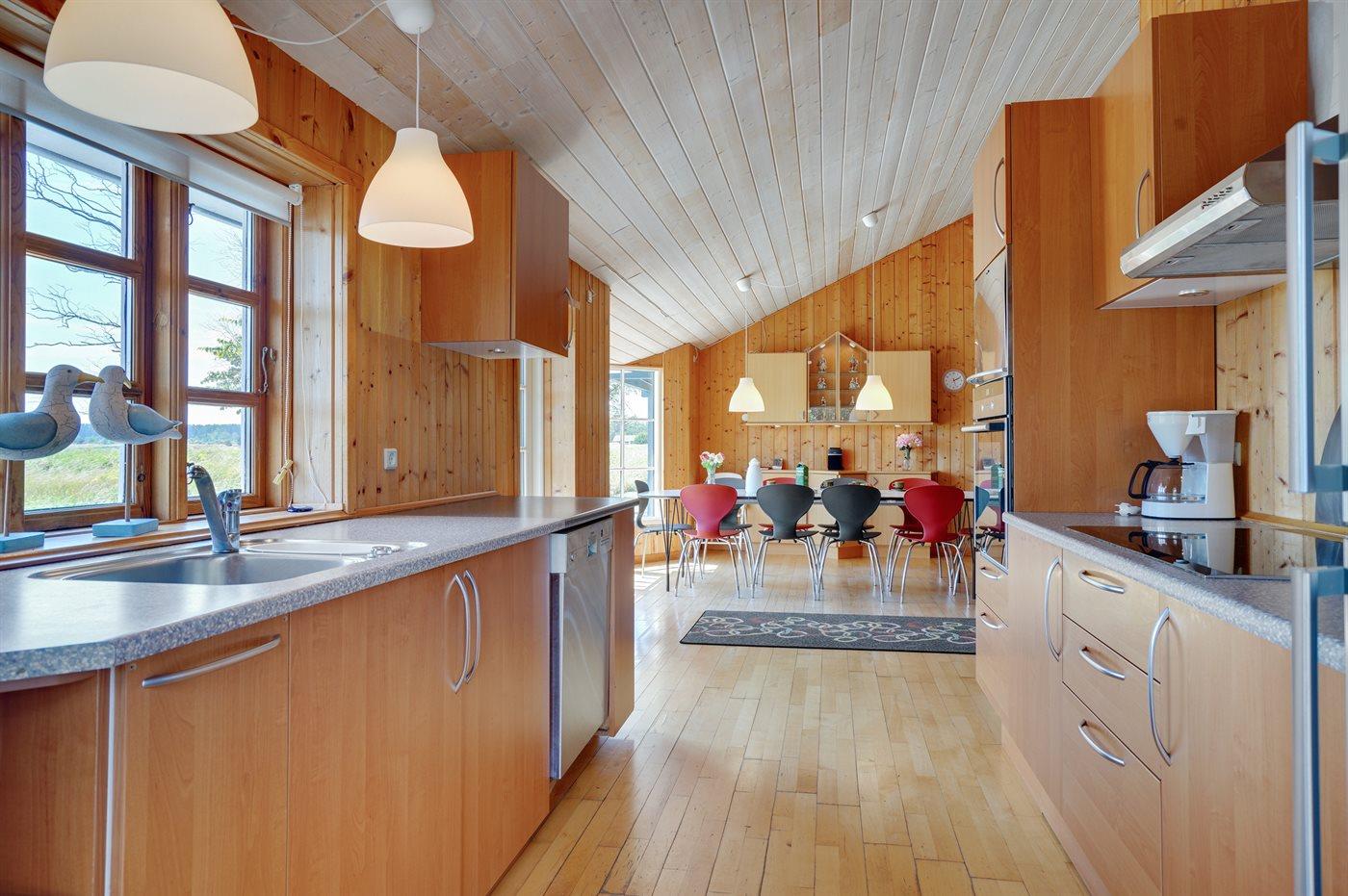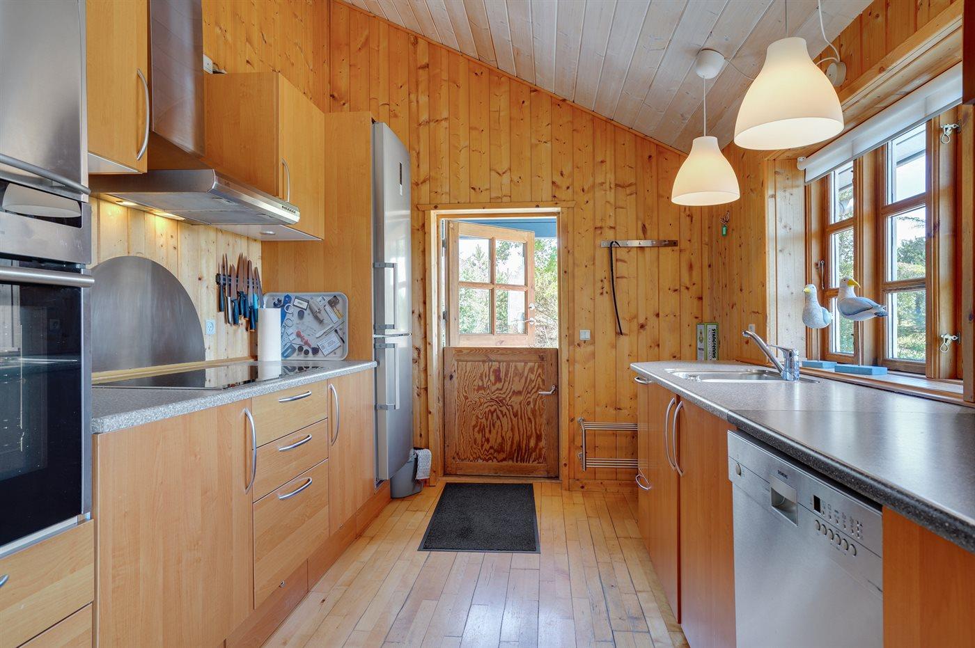 Køkkenet er udstyret med 1 køleskab. Der er 4 induktionskogeplader, varmluftovn, mikrobølgeovn samt opvaskemaskine.
