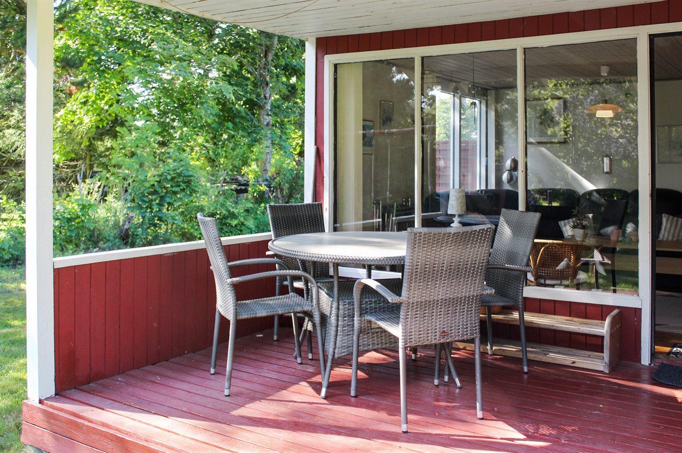 Hyggeligt sommerhus i naturskønne omgivelser nær Sæby med overdækket terrasse og børnevenlige faciliteter.