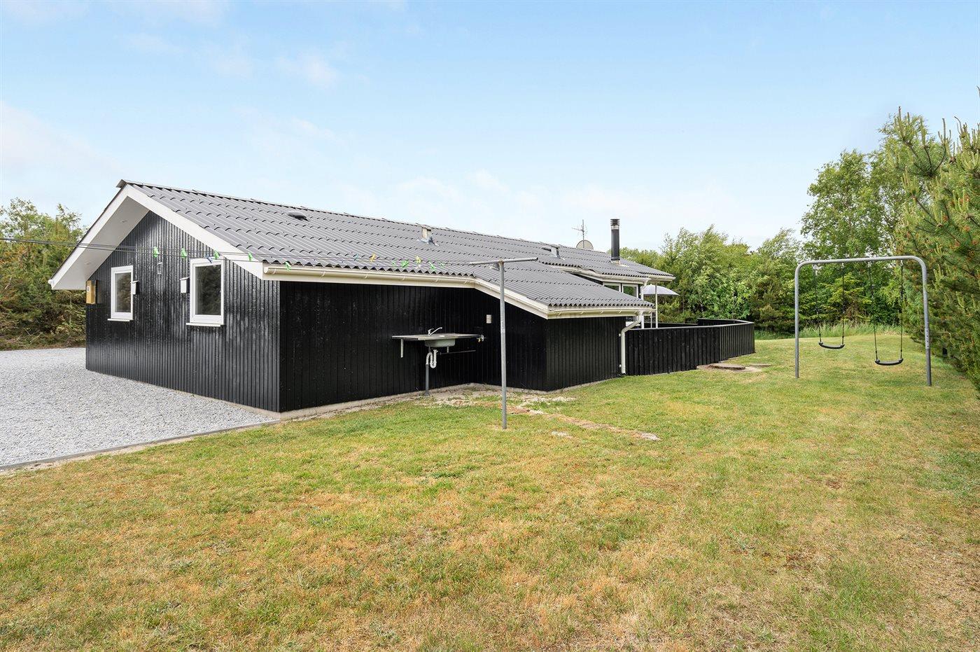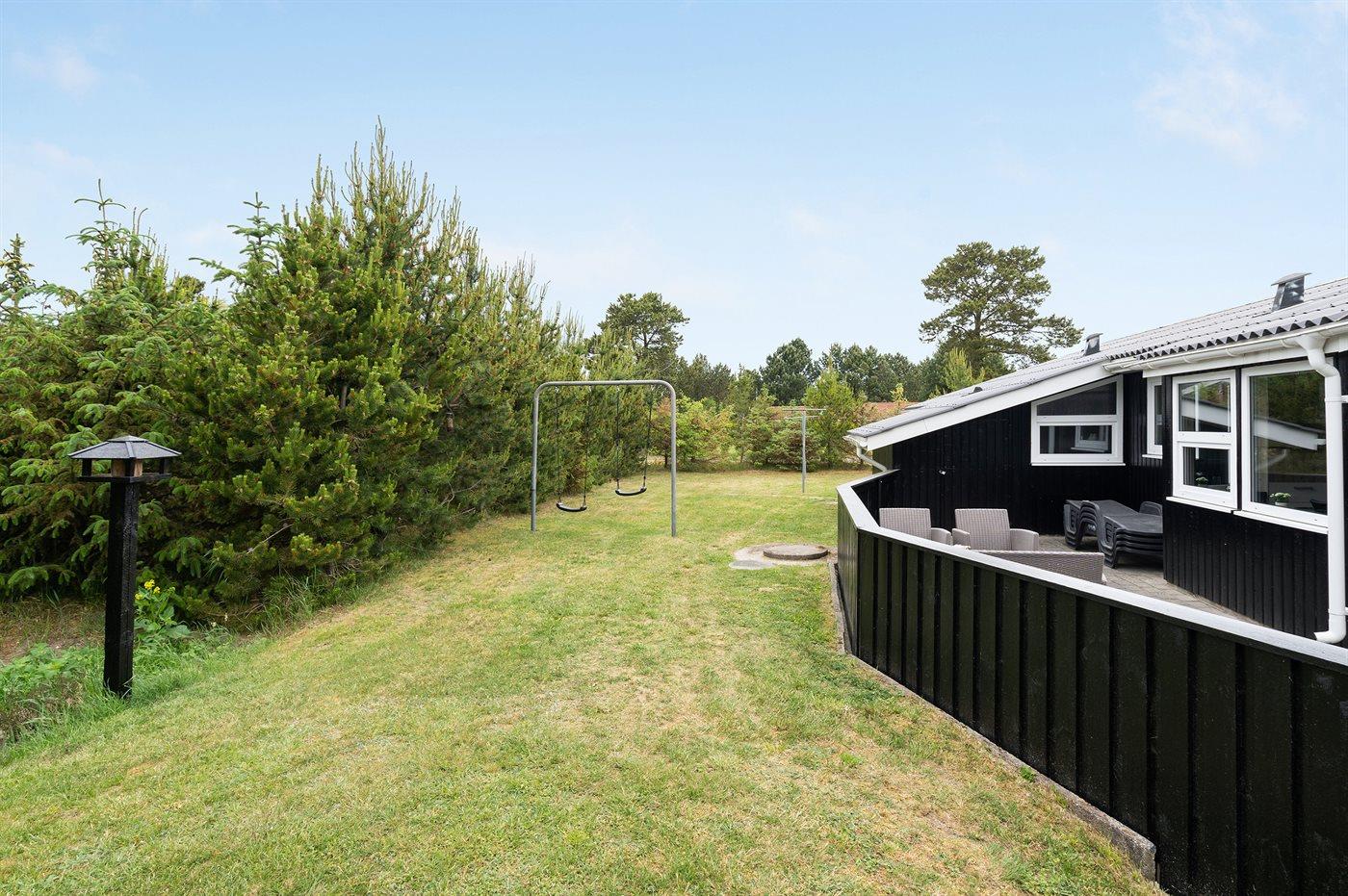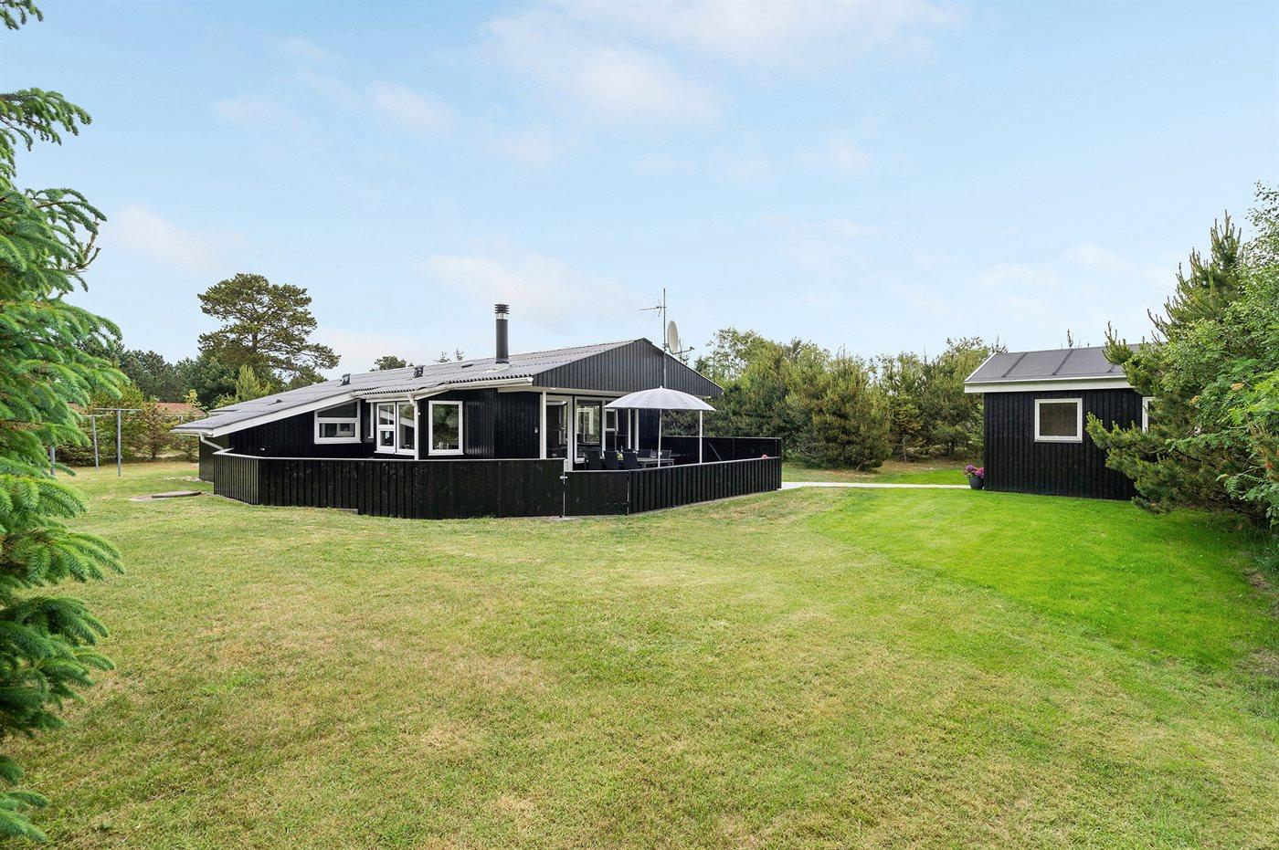 Ferieboligen er beliggende på en 1200 m² stor havegrund. Der er 400 m til havet. Nærmeste forretning er beliggende i en afstand af 5640 m. Der er en golfbane i en afstand af 12000 m. Desuden er der 10 m² overdækket terrasse. Heraf i alt 40 m² lukket terrasse. Der er redskabsrum. Gynge. Der er mulighed for at tilberede maden udendørs i udekøkkenet. Grill til rådighed. Der er installeret stik til opladning af elbil. Parkering ved ferieboligen.
