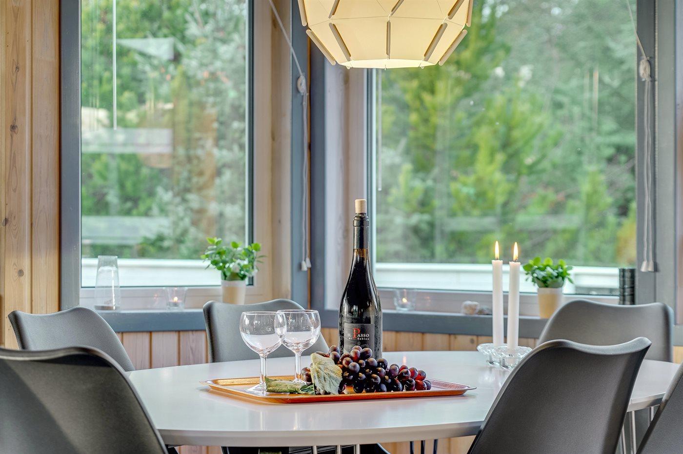 Køkkenet er udstyret med 1 køleskab. Der er 4 induktionskogeplader, varmluftovn, mikrobølgeovn samt opvaskemaskine.