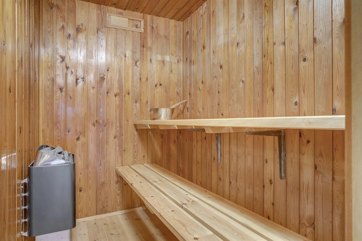 Der er 1 badeværelse med bruseniche og 1 toilet.. Der er gulvvarme på 1 badeværelse. I saunaen er der mulighed for afslapning.