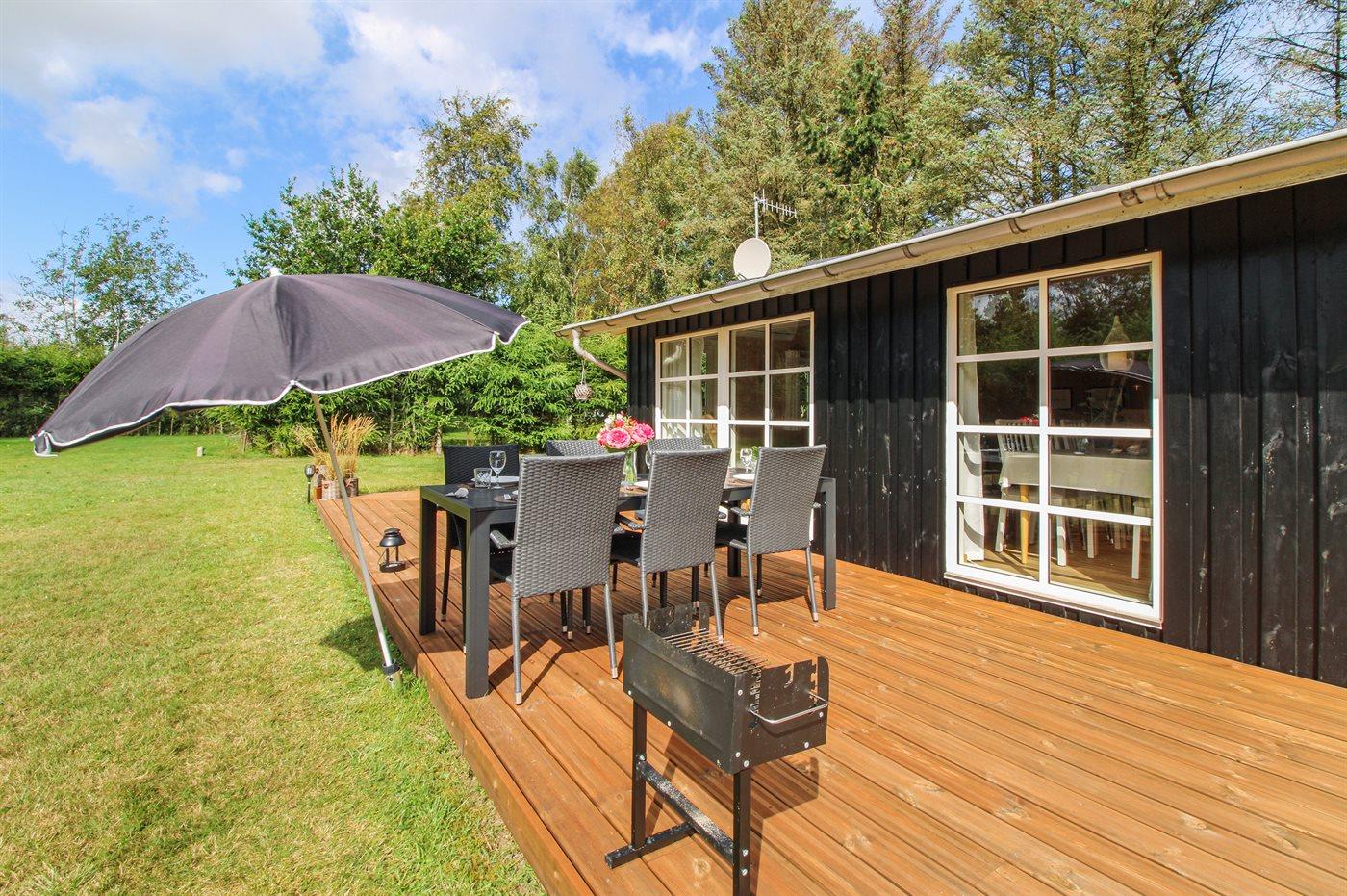 Ferieboligen er beliggende på en 1314 m² stor naturgrund. Der er 450 m til havet. Nærmeste forretning er beliggende i en afstand af 8000 m. Til ferieboligen hører 50 m² terrasseareal. Der er redskabsrum. Grill til rådighed. Der er carport til rådighed. Der er installeret stik til opladning af elbil. Type 2 stik. Med 11 kW ladeeffekt. Parkering ved ferieboligen.