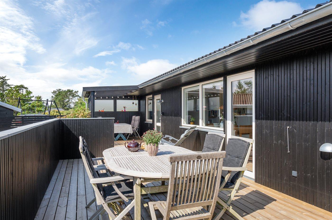 Ferieboligen er beliggende på en 1100 m² stor naturgrund. Der er 100 m til havet. Nærmeste forretning er beliggende i en afstand af 10000 m. Der er en golfbane i en afstand af 12000 m. Til ferieboligen hører 40 m² terrasseareal. Desuden er der 8 m² overdækket terrasse. Udendørs bruser. Grill til rådighed. Parkering ved ferieboligen.