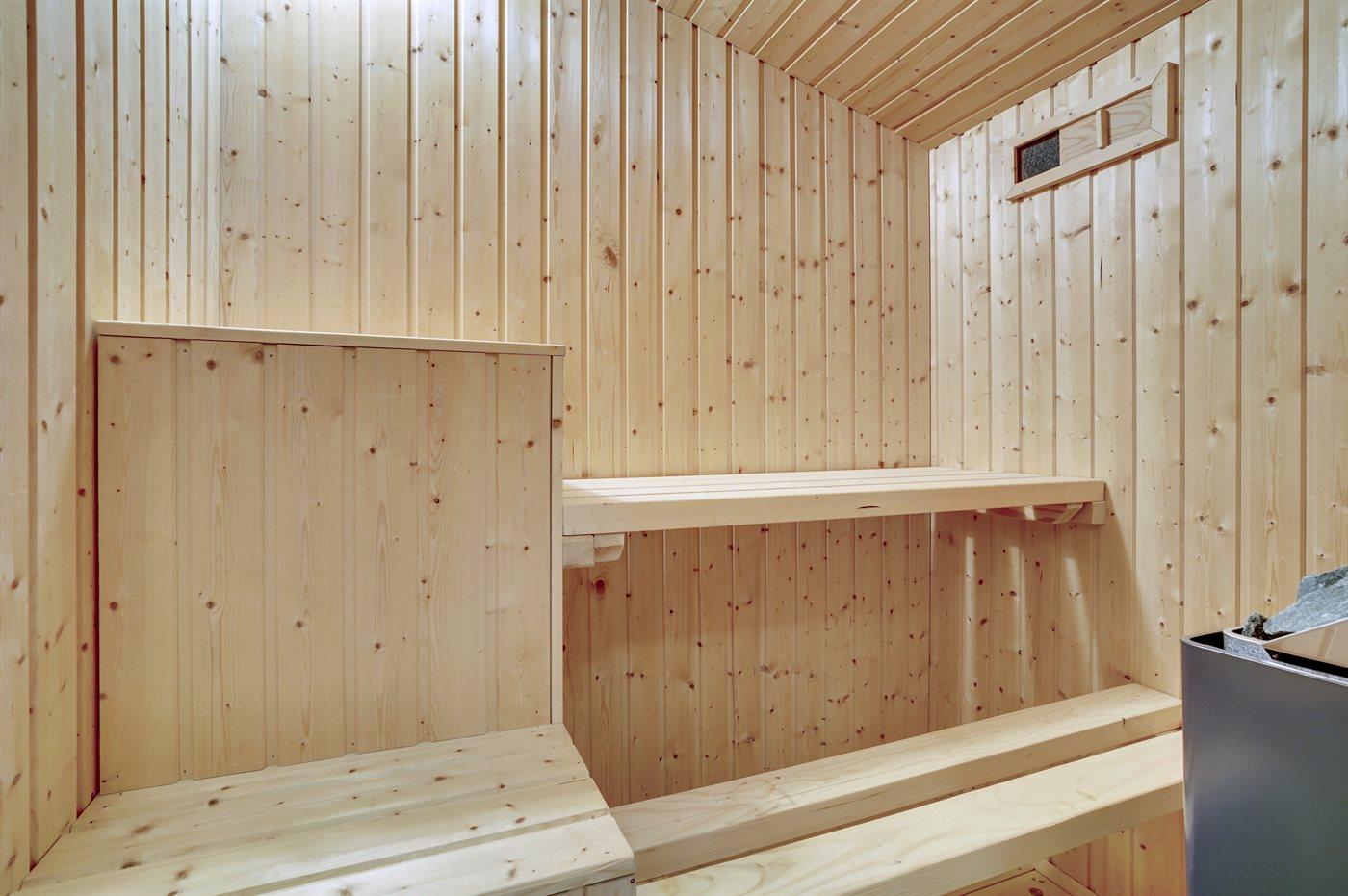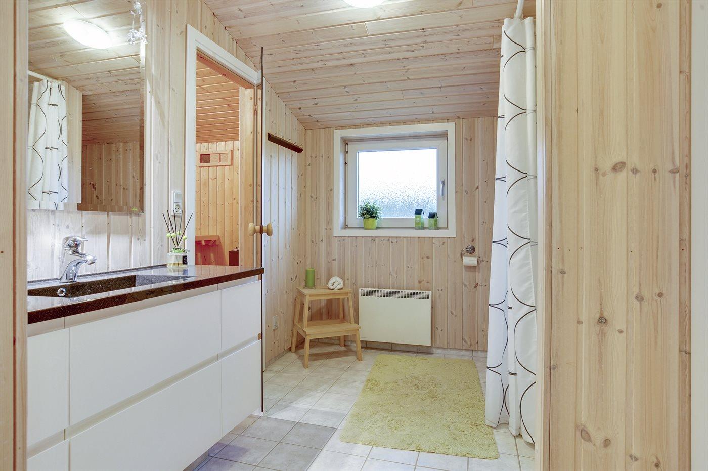 Der er 1 badeværelse med bruseniche og 1 toilet.. Der er gulvvarme på 1 badeværelse. I saunaen er der mulighed for afslapning.