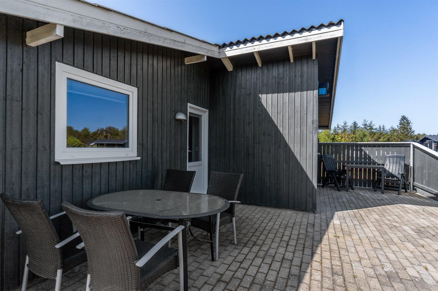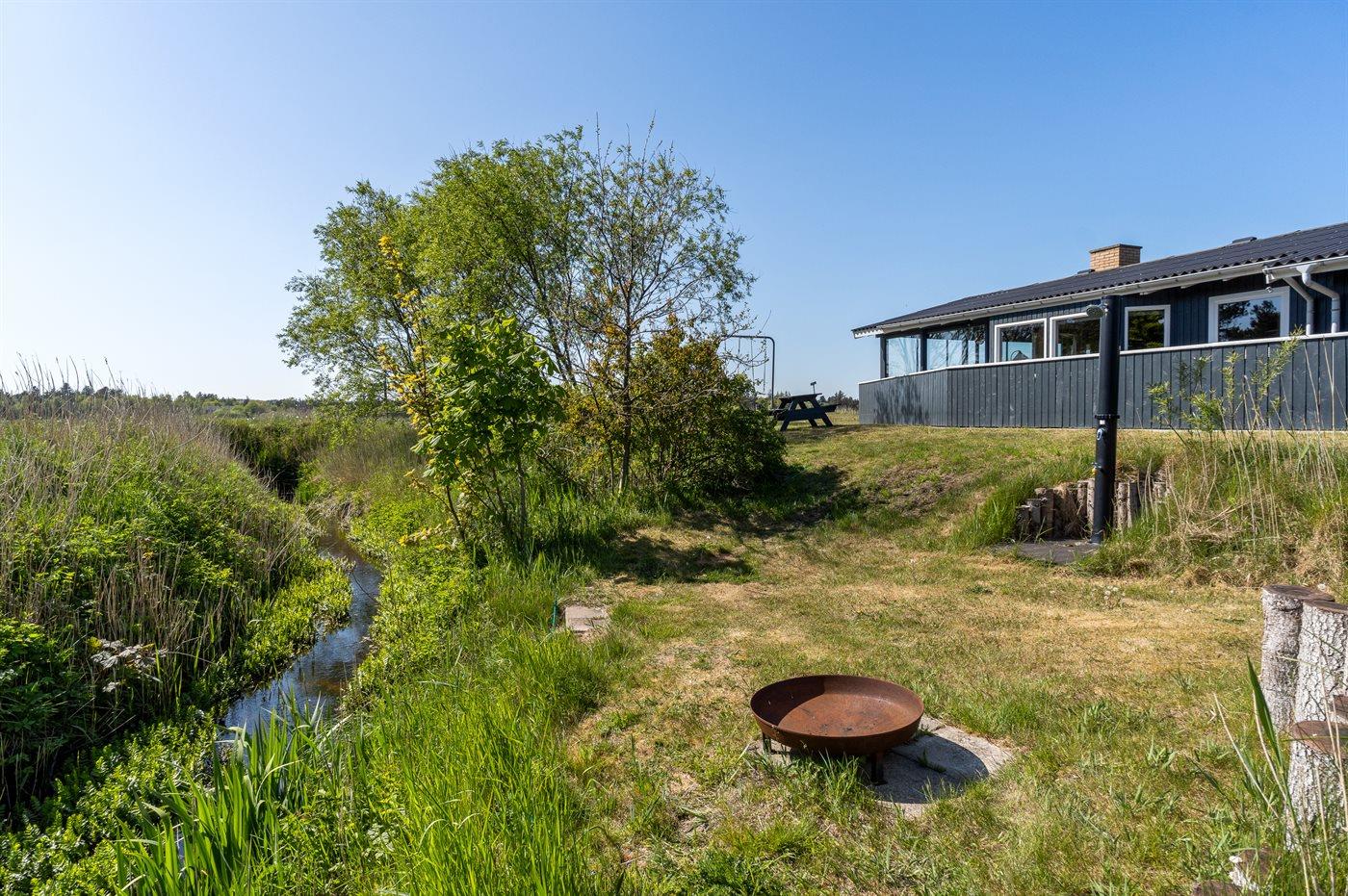 Ferieboligen er beliggende på en 1200 m² stor havegrund. Der er 400 m til havet. Nærmeste forretning er beliggende i en afstand af 8000 m. Der er en golfbane i en afstand af 12000 m. Til ferieboligen hører 20 m² terrasseareal. Desuden er der 10 m² overdækket terrasse. Der er redskabsrum. Gynge. Bålsted. Udendørs bruser. Grill til rådighed. Parkering ved ferieboligen.