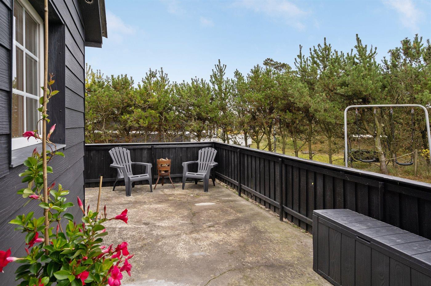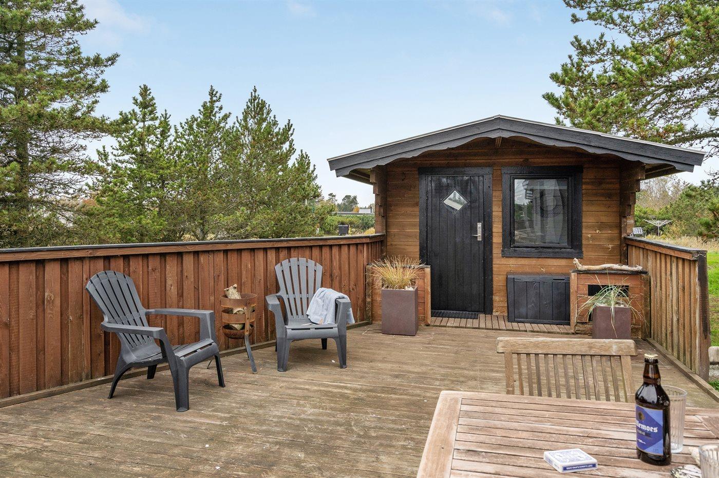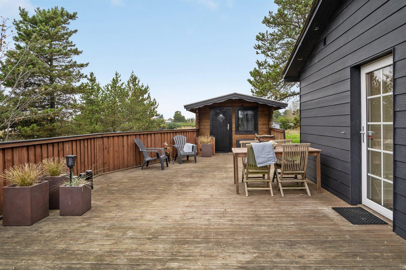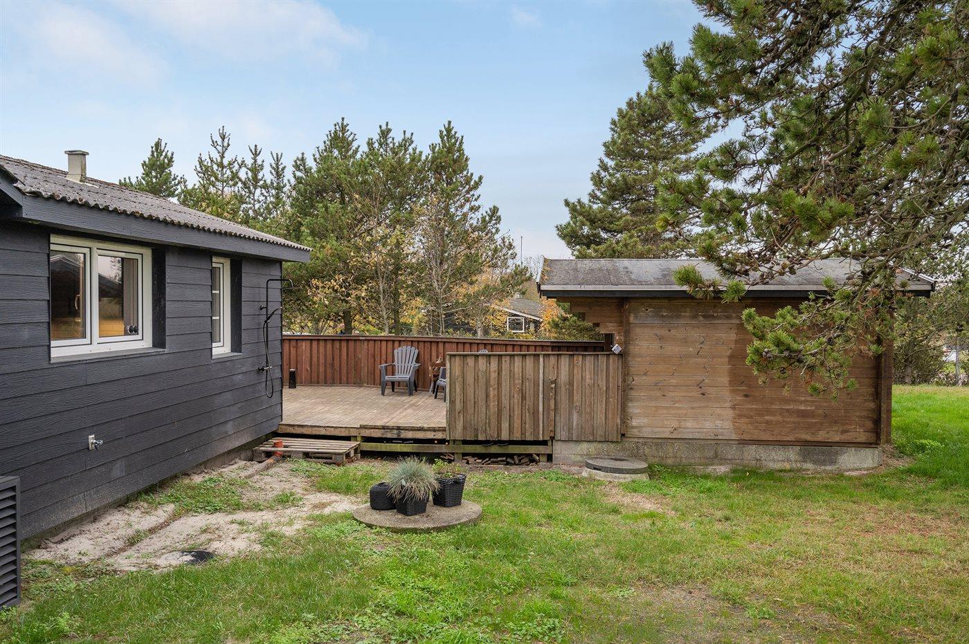 Ferieboligen er beliggende på en 1177 m² stor naturgrund. Der er 100 m til havet. Nærmeste forretning er beliggende i en afstand af 8000 m. Der er en golfbane i en afstand af 12000 m. Til ferieboligen hører 50 m² terrasseareal. Gynge. Der ligger en legeplads i en afstand af 1600 m. Udendørs bruser. Grill til rådighed. Parkering ved ferieboligen.