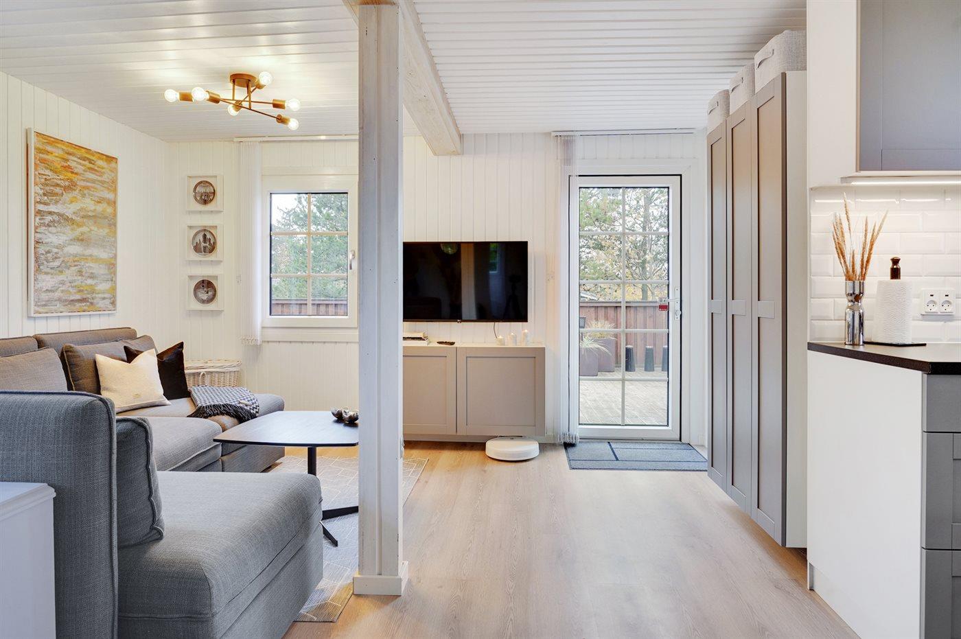 Velholdt sommerhus tæt på vand og strand med moderne faciliteter og hyggelig atmosfære.