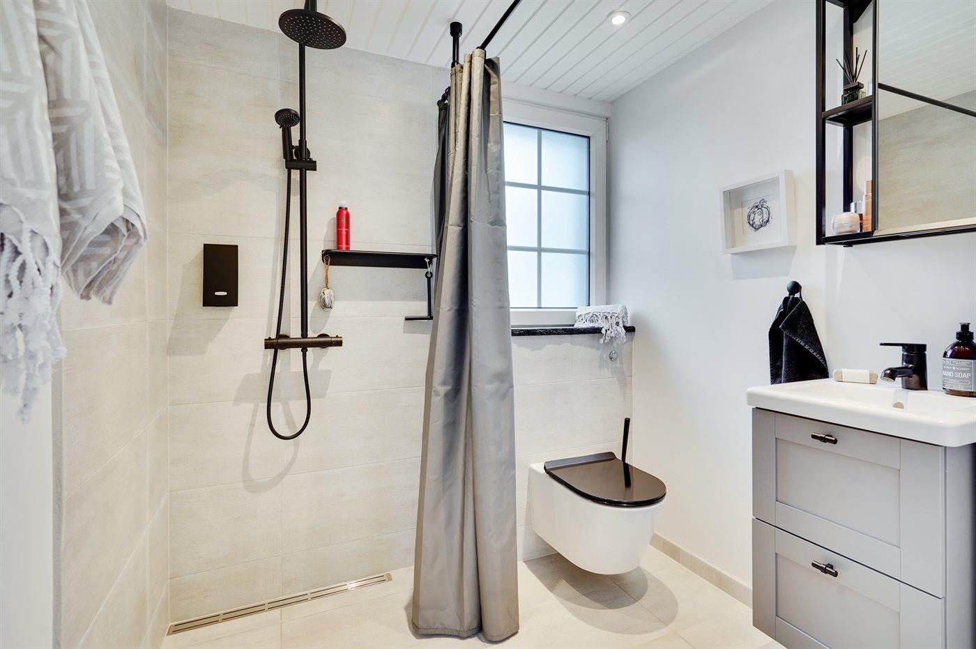 Der er 1 badeværelse med bruseniche og 1 toilet.. Der er gulvvarme på 1 badeværelse.