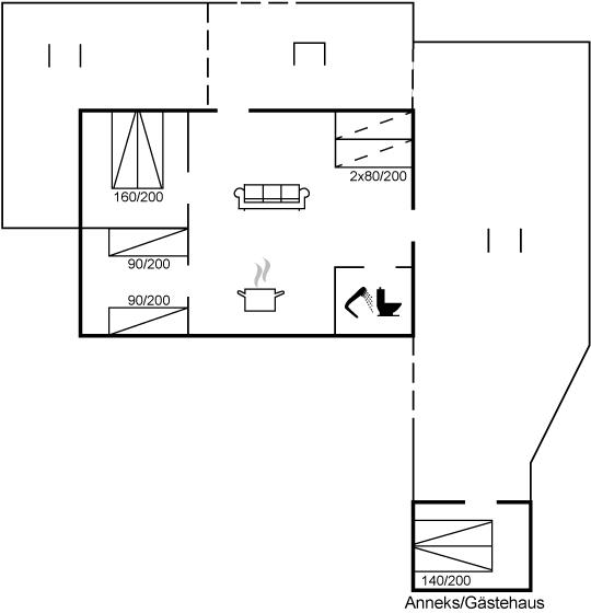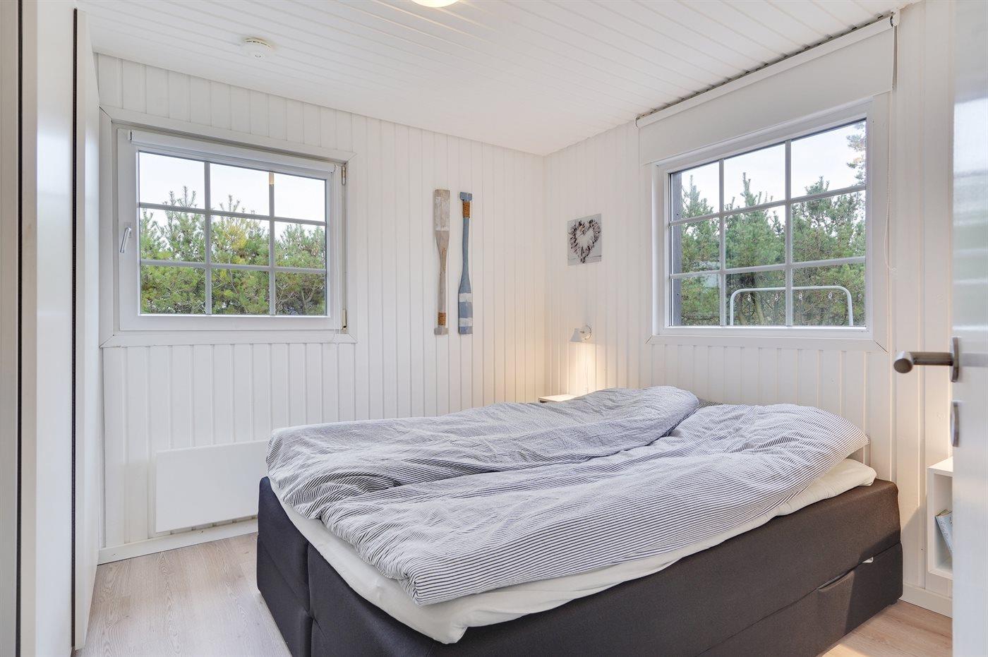 Der er i alt 2 soveværelser. Sovepladserne fordeler sig på: 2 sovepladser i dobbeltseng. 2 sovepladser i enkeltsenge. 2 sovepladser i sovesofa (enkelt).- 2 af disse sovepladser befinder sig i stuen.