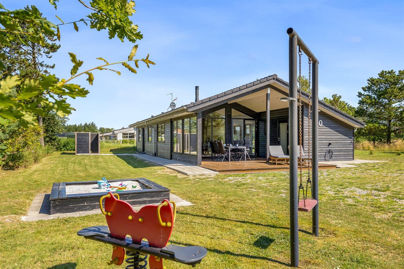 Moderne sommerhus tæt på børnevenlig sandstrand med el-lader og hyggelig atmosfære.