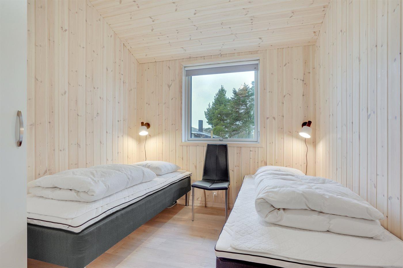 Der er i alt 3 soveværelser. Sovepladserne fordeler sig på: 4 sovepladser i dobbeltsenge. 2 sovepladser i enkeltsenge. Derudover er der 1 stk. barneseng.