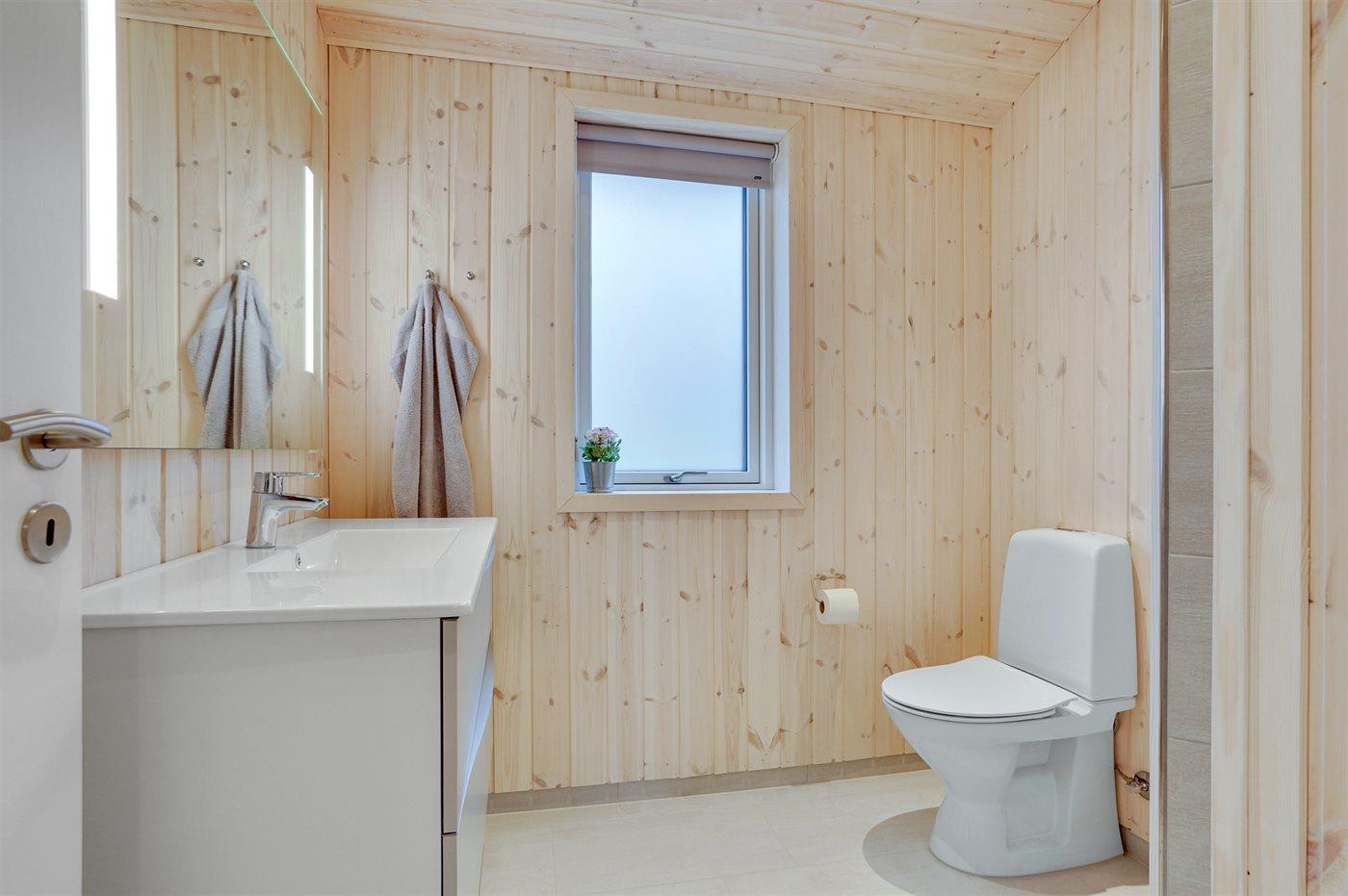 Der er 1 badeværelse med bruseniche og 2 toiletter, heraf 1 gæstetoilet. Der er gulvvarme på 1 badeværelse. Der er gulvvarme på gæstetoilettet.