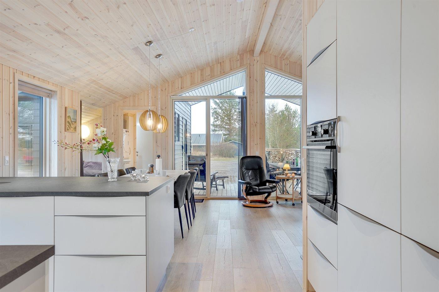 Køkkenet er udstyret med 1 køleskab (311L). Der er 4 induktionskogeplader, varmluftovn, mikrobølgeovn samt opvaskemaskine.
