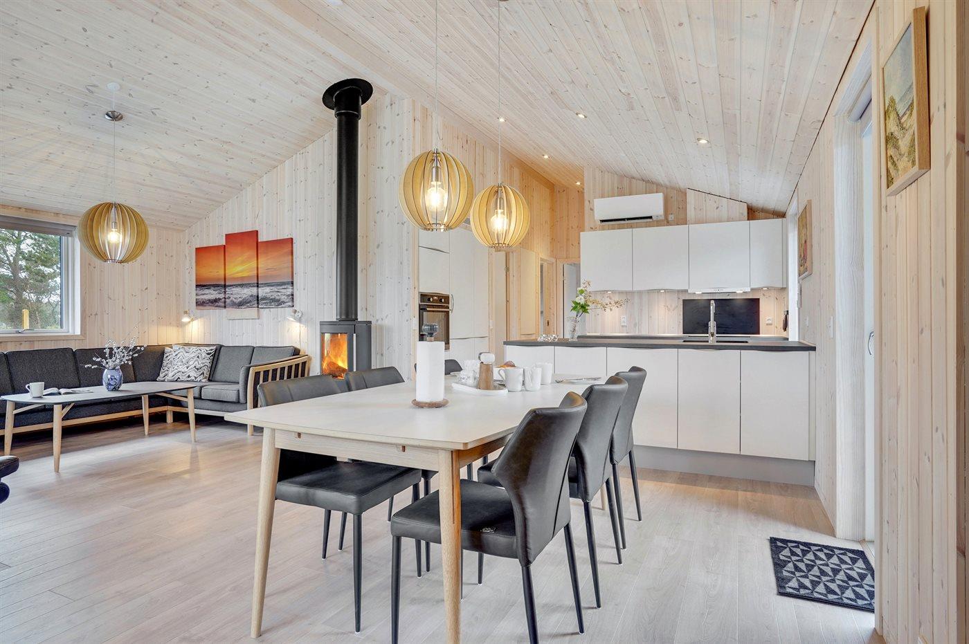 Sommerhuset egner sig til 6 personer samt 1 barn op til 3 år. Ferieboligen er på 94 m² og er bygget i 2022. Det er ikke tilladt at medbringe husdyr. Ferieboligen er udstyret med energibesparende luft til luft varmepumpe. Der er gulvvarme i alle klinkegulve. Ferieboligen har vaskemaskine. Tørretumbler. Frysekapacitet på 194 liter. Der er desuden brændeovn. Til de små er der 1 stk. barnestol.