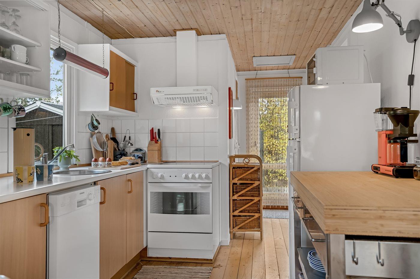 Køkkenet er udstyret med 1 køleskab. Der er 4 keramiske kogeplader, varmluftovn, mikrobølgeovn samt opvaskemaskine.