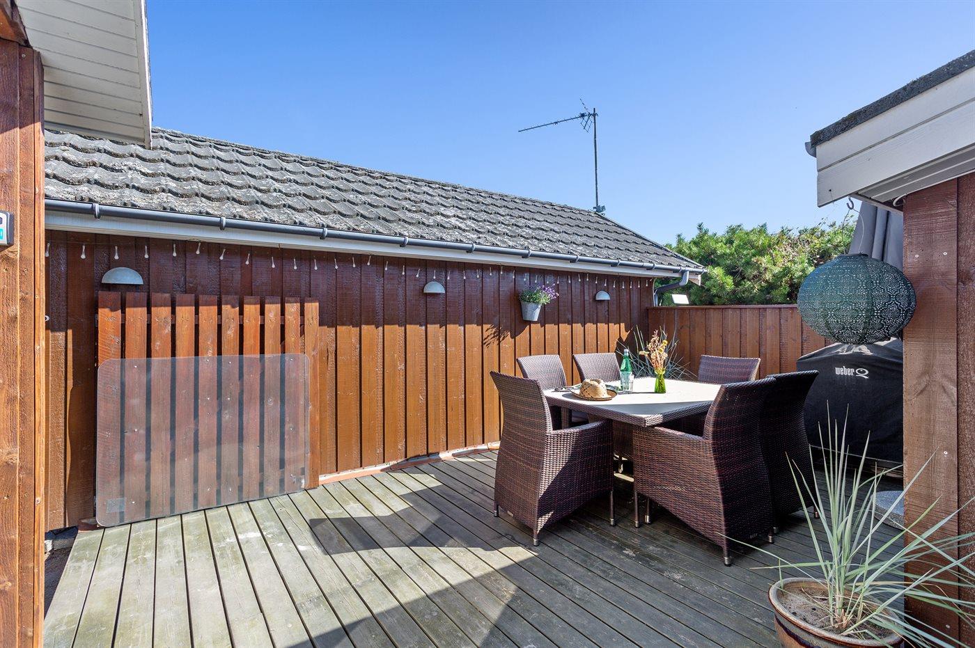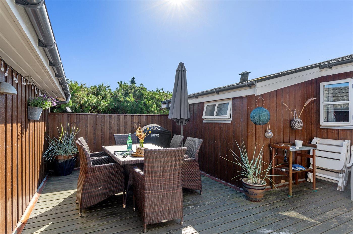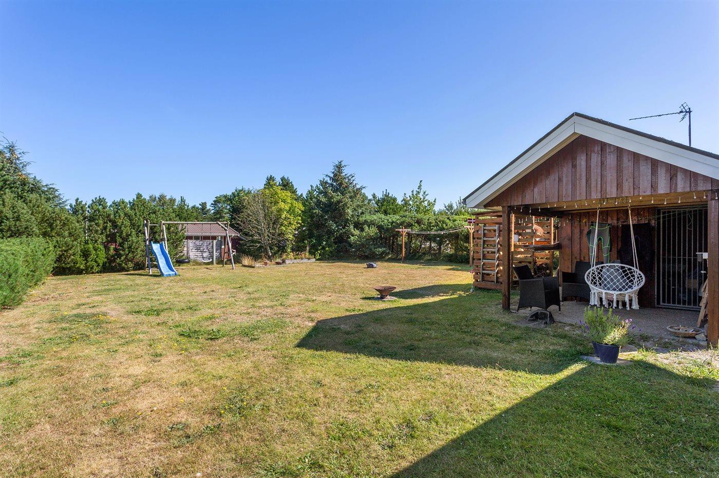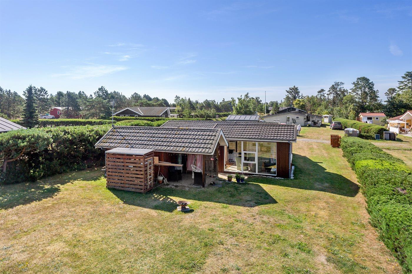 Ferieboligen er beliggende på en 855 m² stor havegrund. Der er 200 m til havet. Nærmeste forretning er beliggende i en afstand af 7000 m. Til ferieboligen hører åbent terrasseareal. Gynge. Grill til rådighed. Parkering ved ferieboligen.