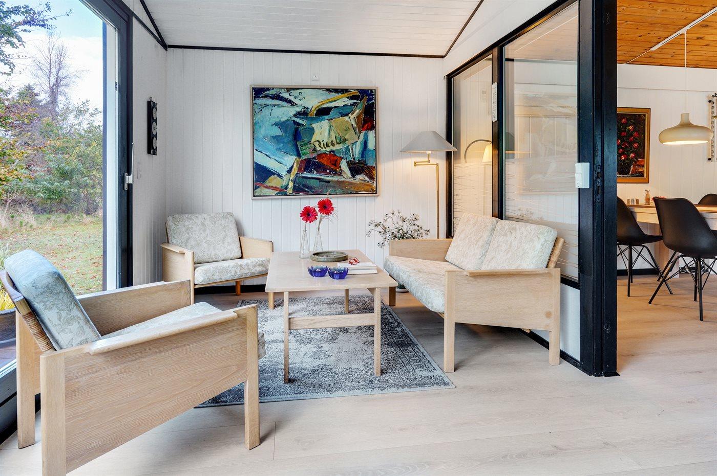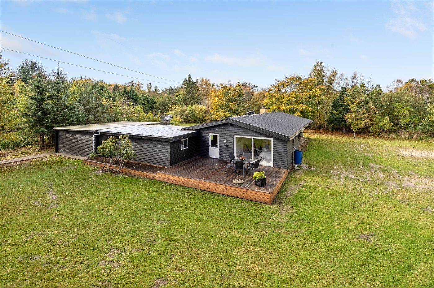 Et flot sommerhus, som er nænsomt renoveret i 2022, og hvortil der hører flere skønne terrasser, heraf en overdækket således der er god mulighed for at finde en plads i solen eller et sted med læ. På den store grund, som er omkranset af skov, er der god mulighed for at tilbringe masser af timer i det fri og der er gode muligheder for at se dådyr.