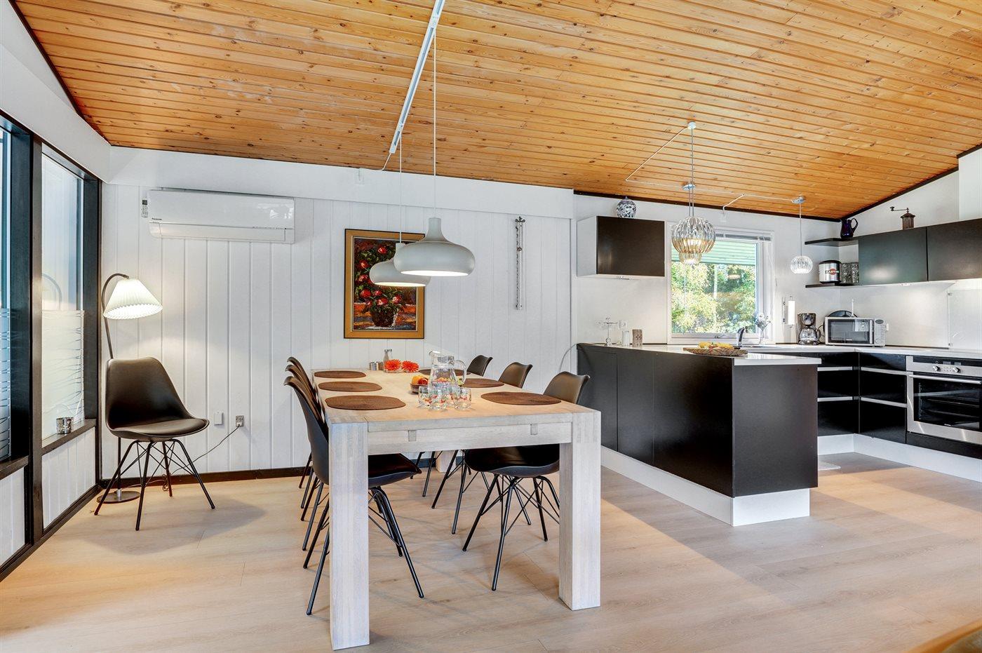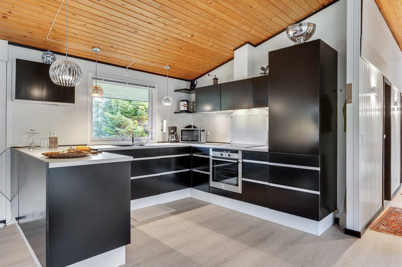 Køkkenet er udstyret med 1 køleskab. Der er 4 induktionskogeplader, varmluftovn, mikrobølgeovn samt opvaskemaskine.