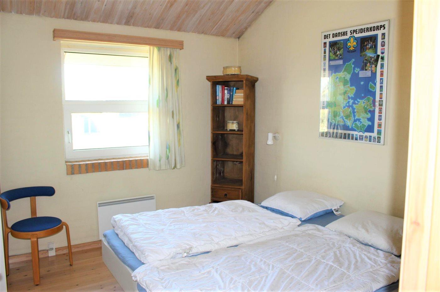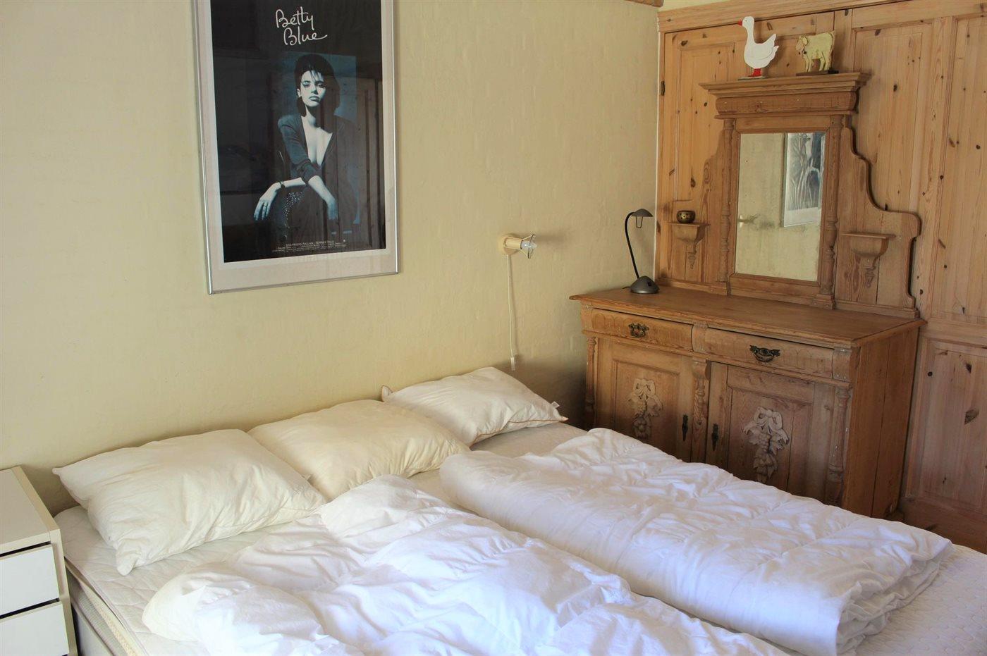 Der er i alt 3 soveværelser. Sovepladserne fordeler sig på: 6 sovepladser i dobbeltsenge. 2 sovepladser i køjeseng. Derudover er der 1 stk. barneseng.