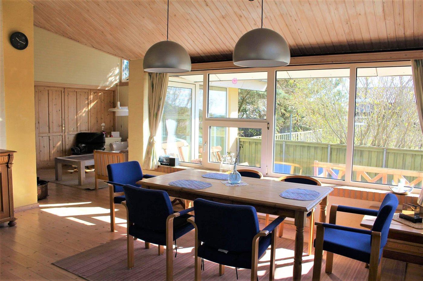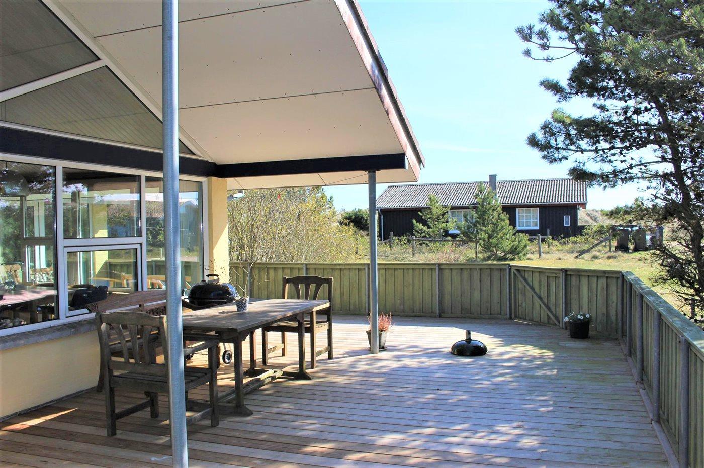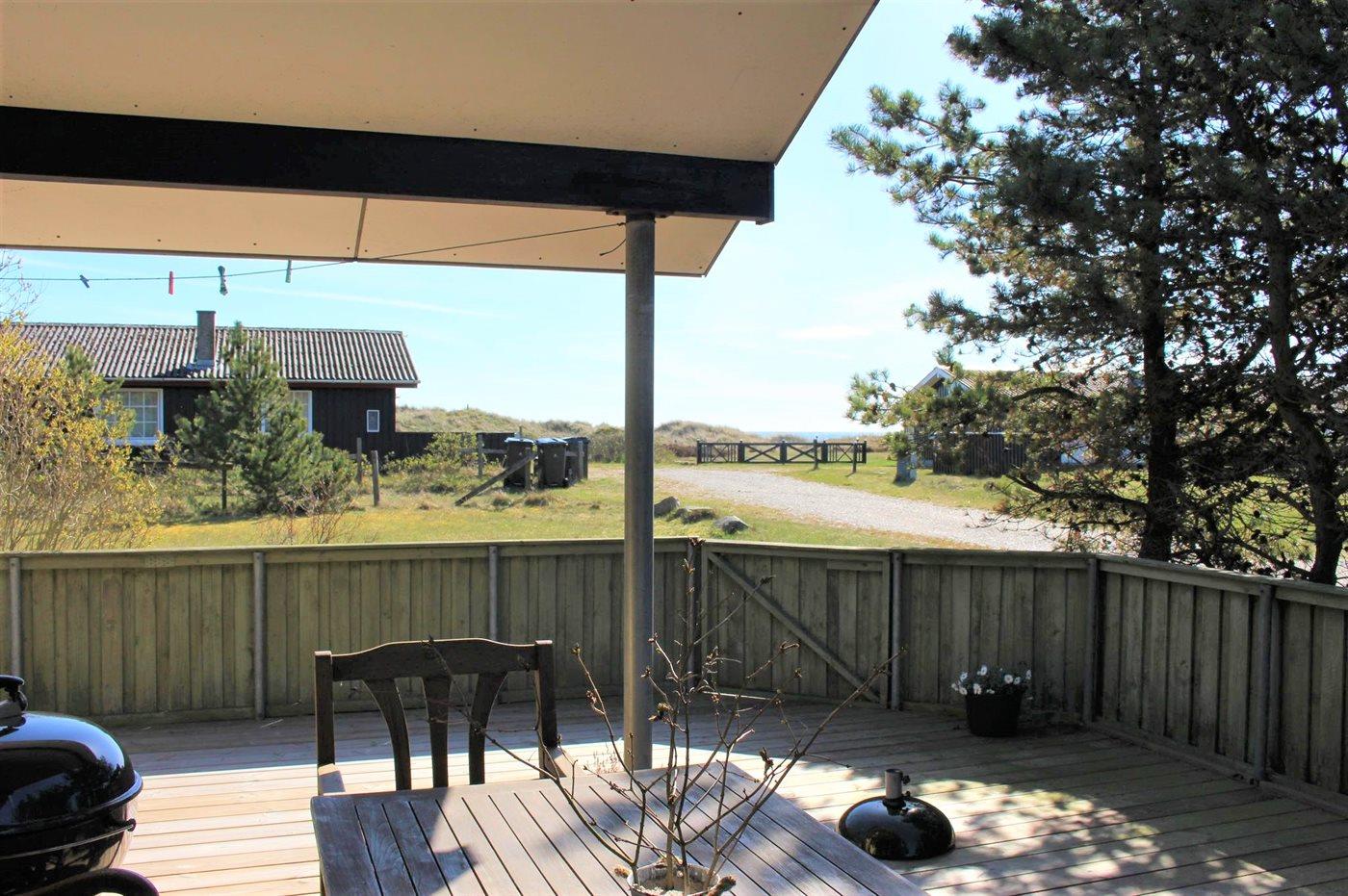 Sommerhuset er godt indrettet, og her er god plads til en familie, som måske har bedsteforældre med på ferie. Udvendig findes et skønt terrasseareal, som også delvist er overdækket.