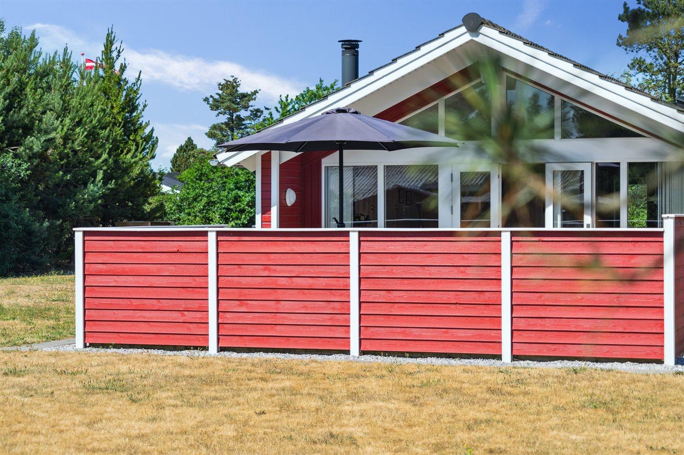 Ferieboligen er beliggende på en 1200 m² stor naturgrund. Der er 300 m til havet. Nærmeste forretning er beliggende i en afstand af 6000 m. Til ferieboligen hører åbent terrasseareal. Der er redskabsrum. Grill til rådighed. Parkering ved ferieboligen.